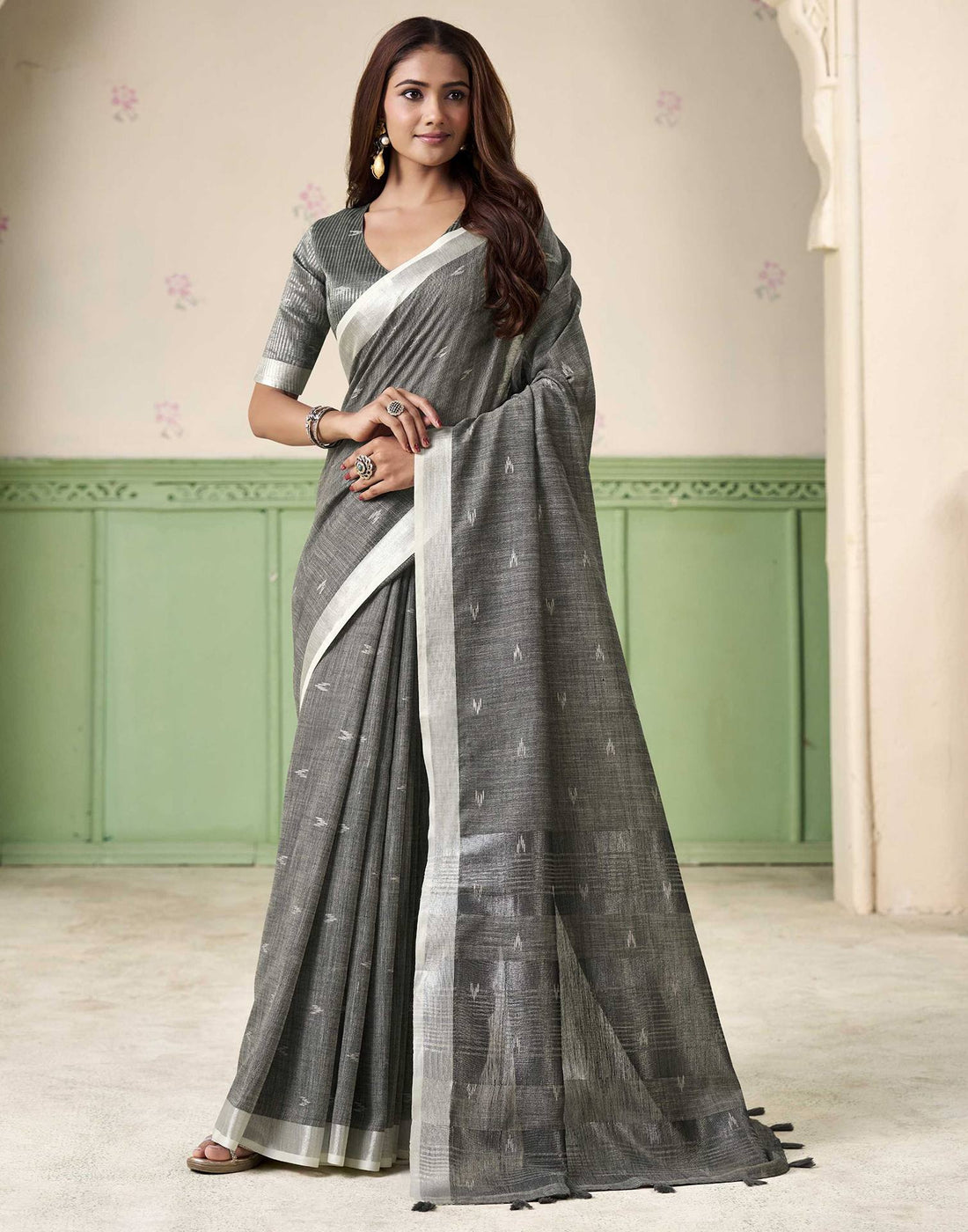 KHYATI Grey Linen Silk Woven Saree