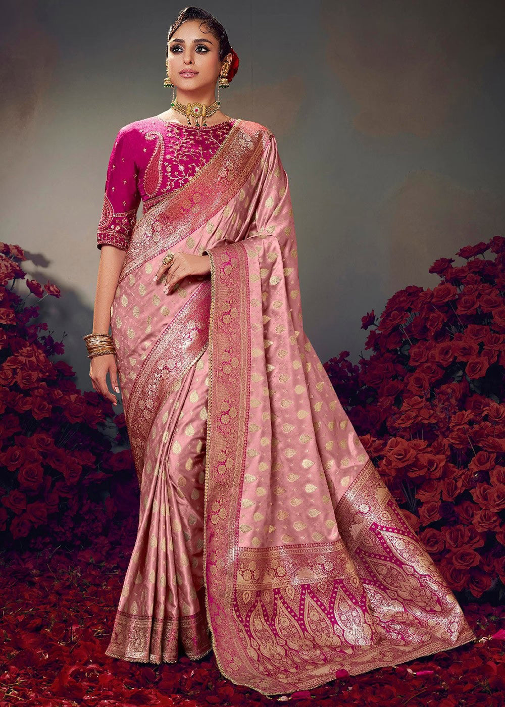 Elegance meets softness in this Light Pink Satin-Based Fancy Saree from the Keshva Silk Collection...