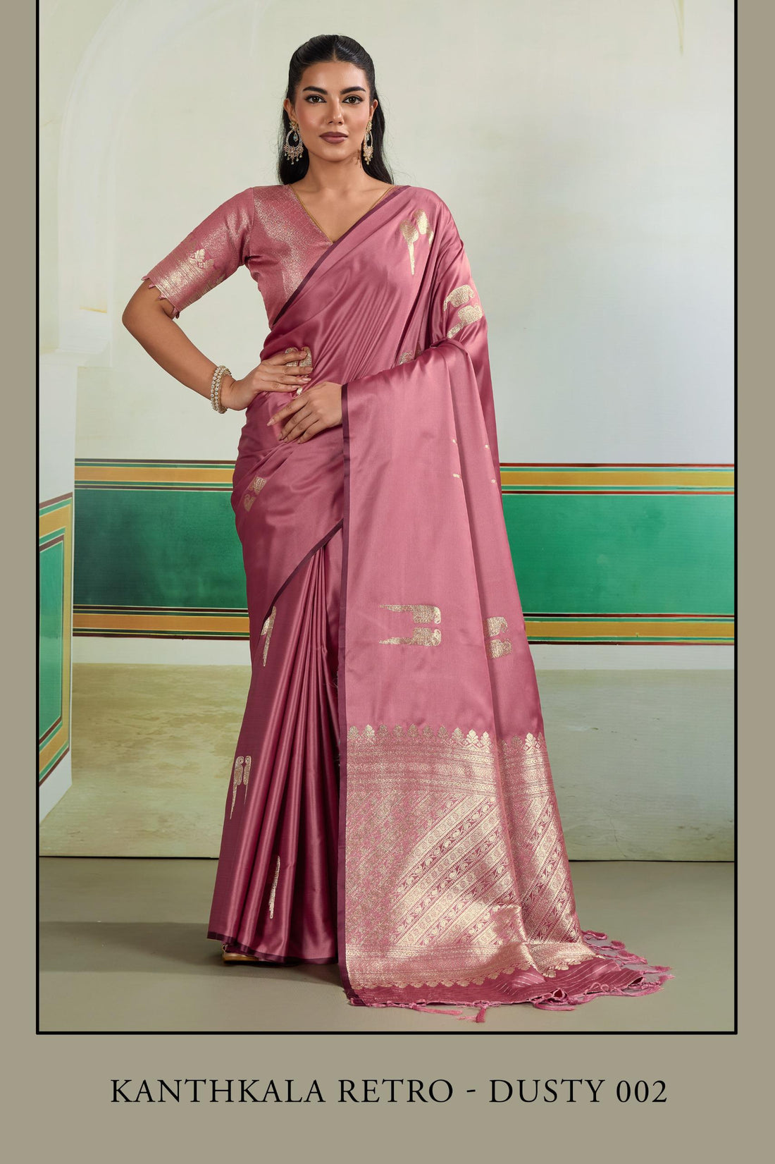 Kanthkala Retro Dusty Pure Satin Handloom Weaving Saree