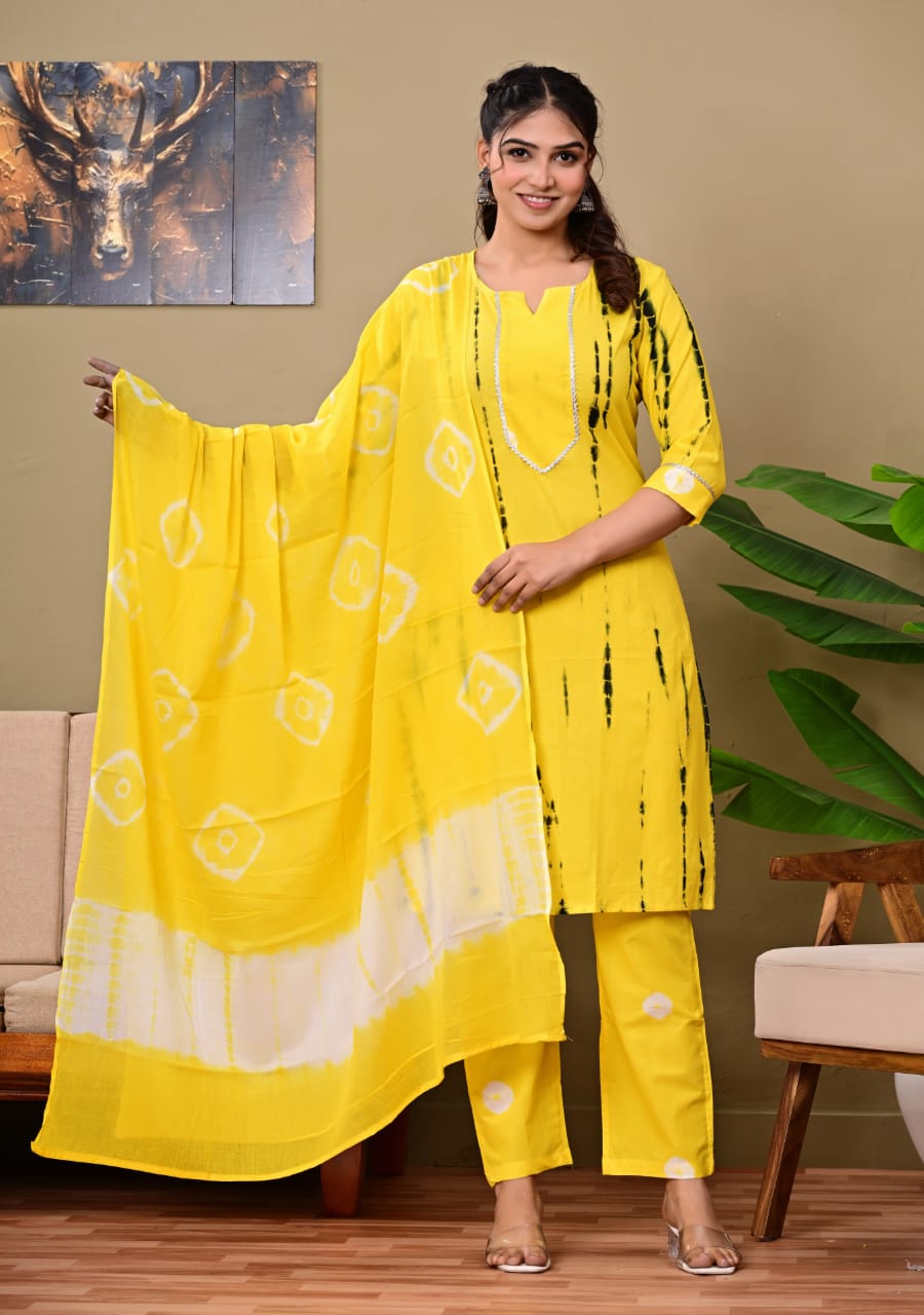 Discover timeless craftsmanship with our hand-block printed stitched cotton suit set. Soft, breathable, and beautifully...