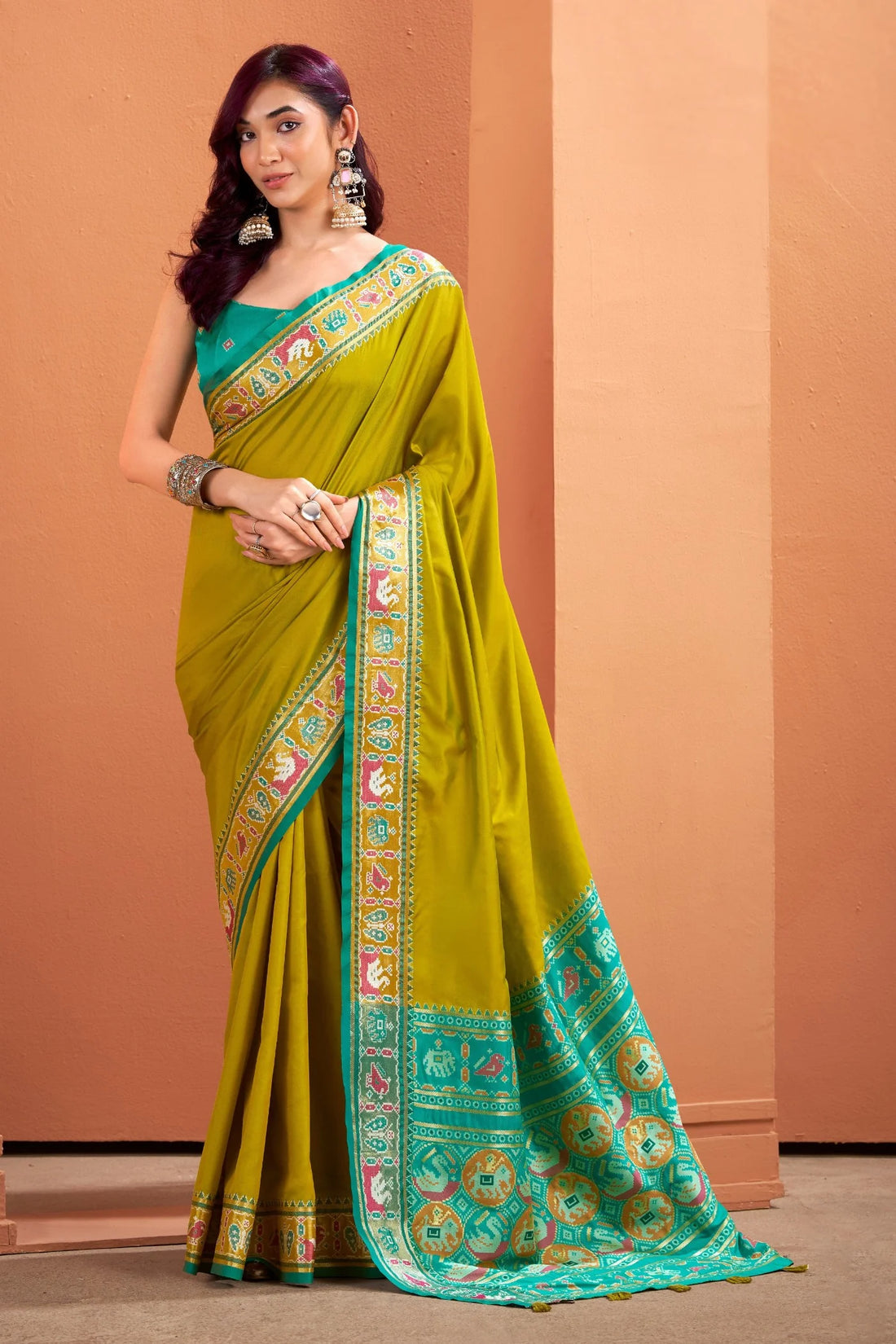 VRUNDAVN Mustard Yellow Patola Silk Saree