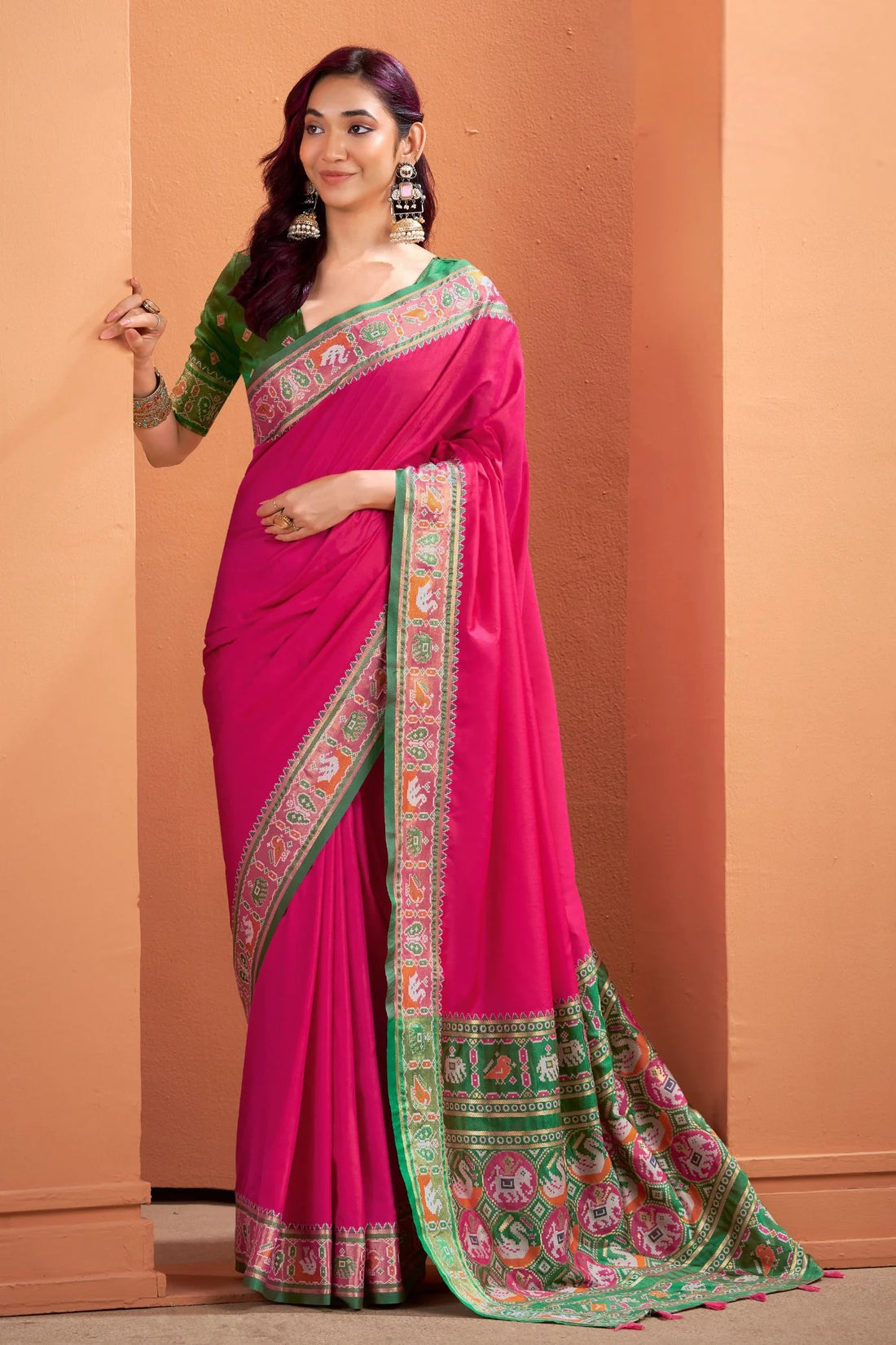 VRUNDAVN Rouge Pink Patola Silk Saree