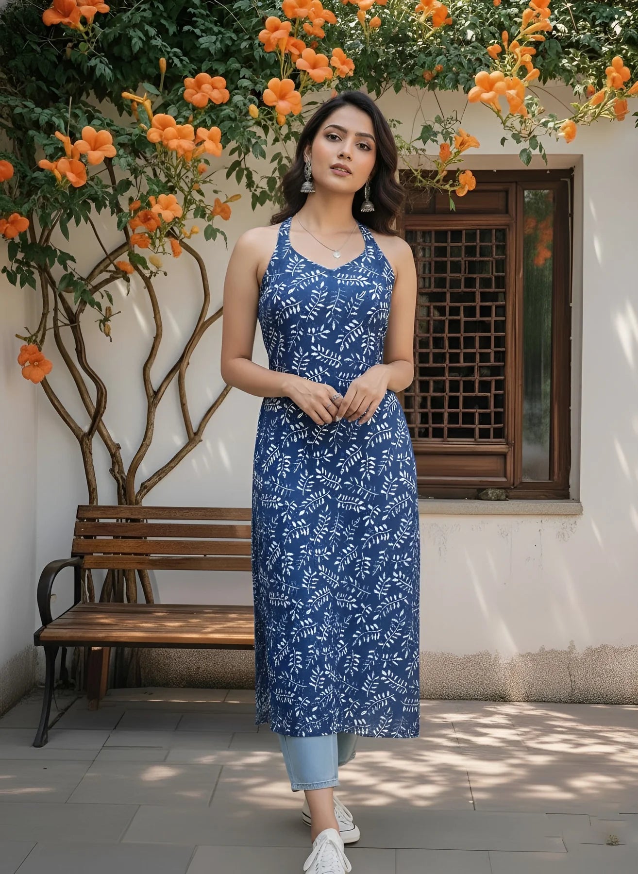 This blue printed straight kurta is crafted from pure cotton, offering breathable comfort and effortless style. Designed with a stylish back detail and a sleek sleeveless silhouette, it brings a modern touch to everyday ethnic wear. Lightweight and versatile, this kurta is perfect for warm-weather dressing and easy day-to-evening transitions.