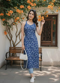 Blue Printed Stylish Back Straight Sleeveless Kurta