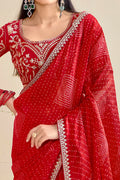 Bright Red Bandhniya Georgette Saree