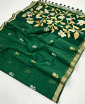 Pair this saree with statement silver or antique gold jewellery and minimal makeup for an effortlessly refined ethnic look.