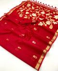 The highlight lies in its Organza weaving pallu, adding a contemporary lightness while retaining a traditional soul. Perfectly balanced between heritage and sophistication, this saree is designed for women who appreciate artisanal elegance and premium handloom artistry.