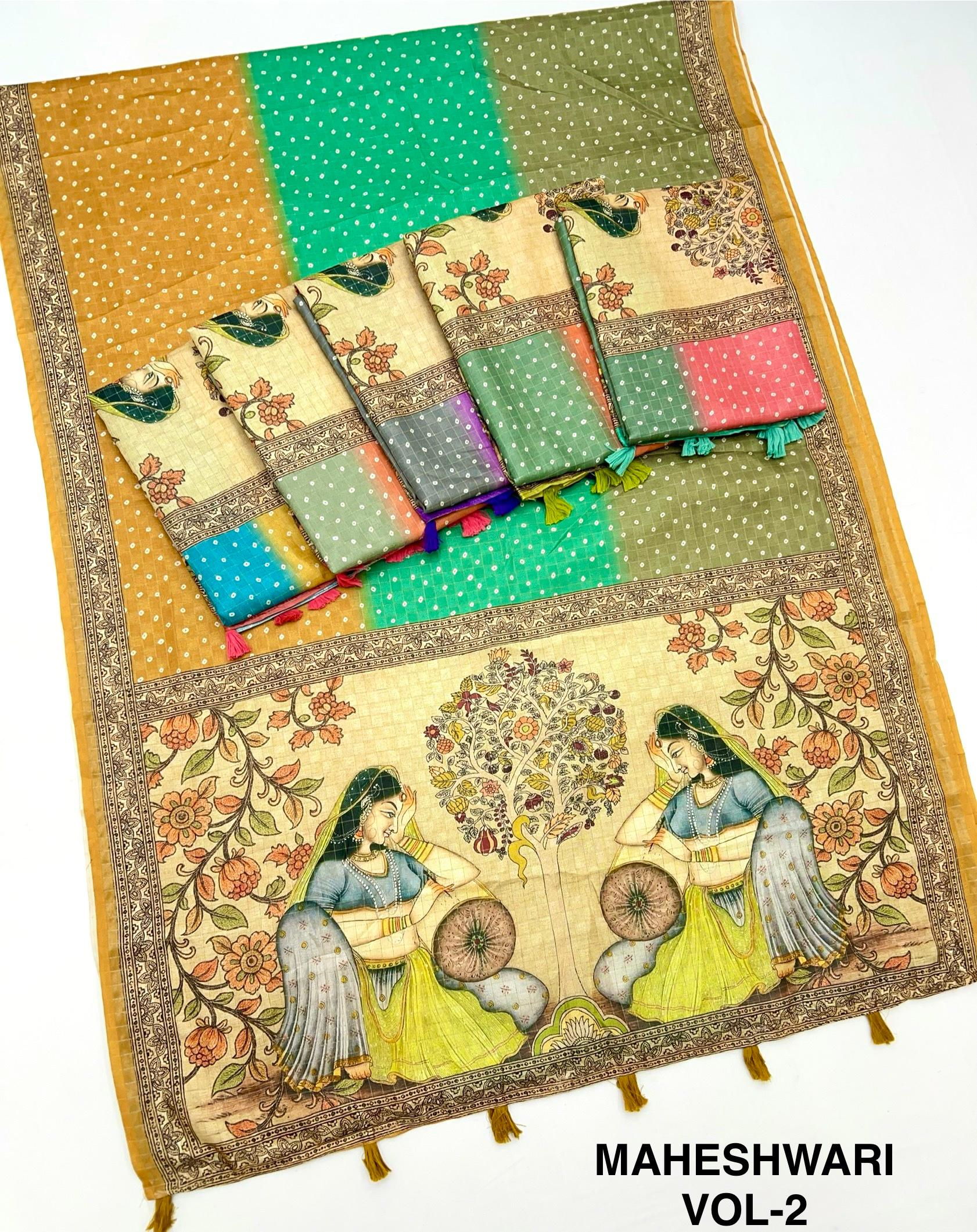 Step into timeless elegance with the RajYog Maheshwari Silk Saree. Crafted from premium Maheshwari cotton silk, featuring classic zari chex and rich digital prints, this saree blends traditional craftsmanship with modern sophistication.