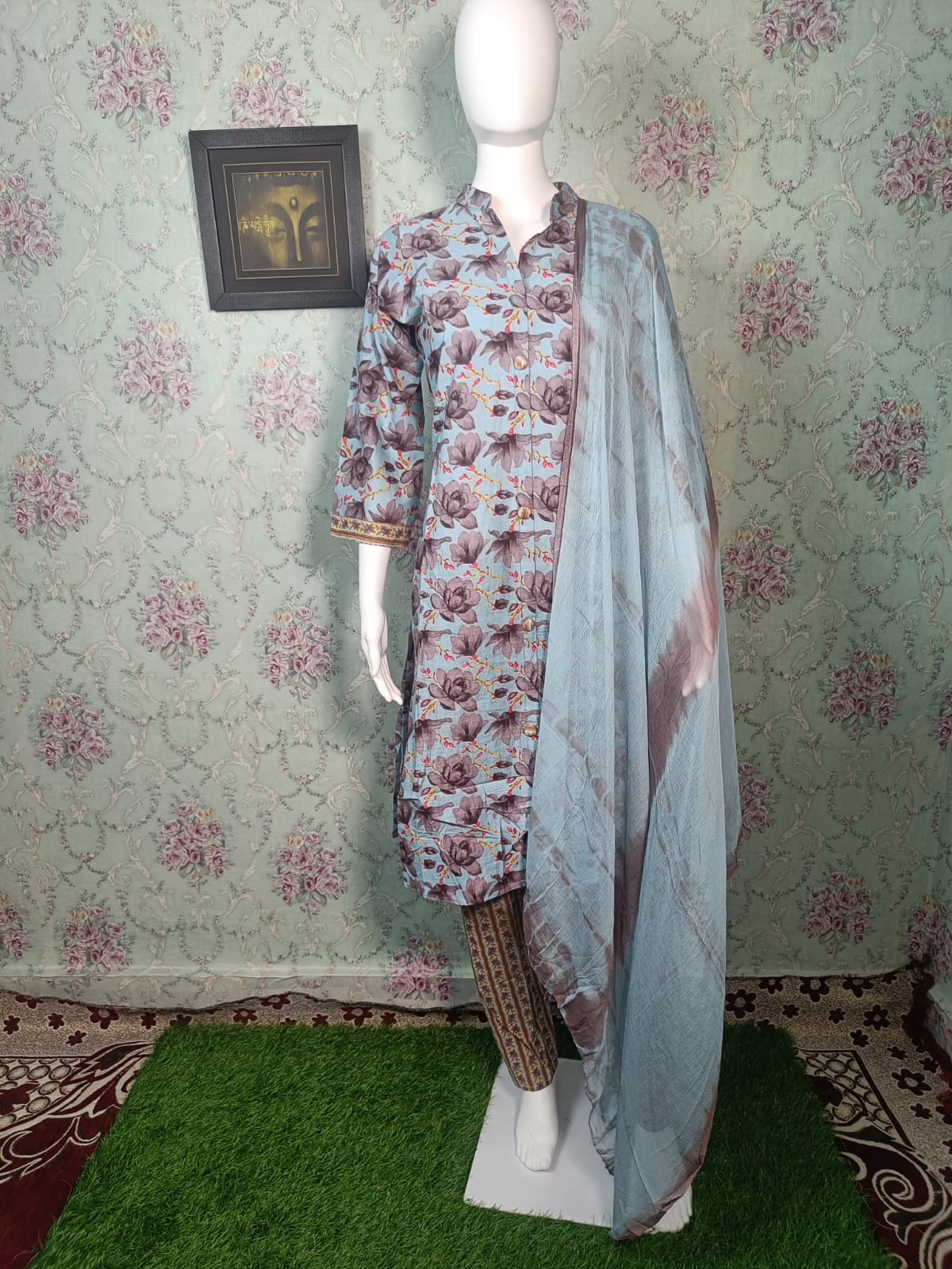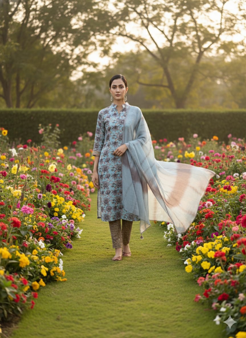 - Fabric: Soft Cotton Kurti & Pant | Chiffon Dupatta