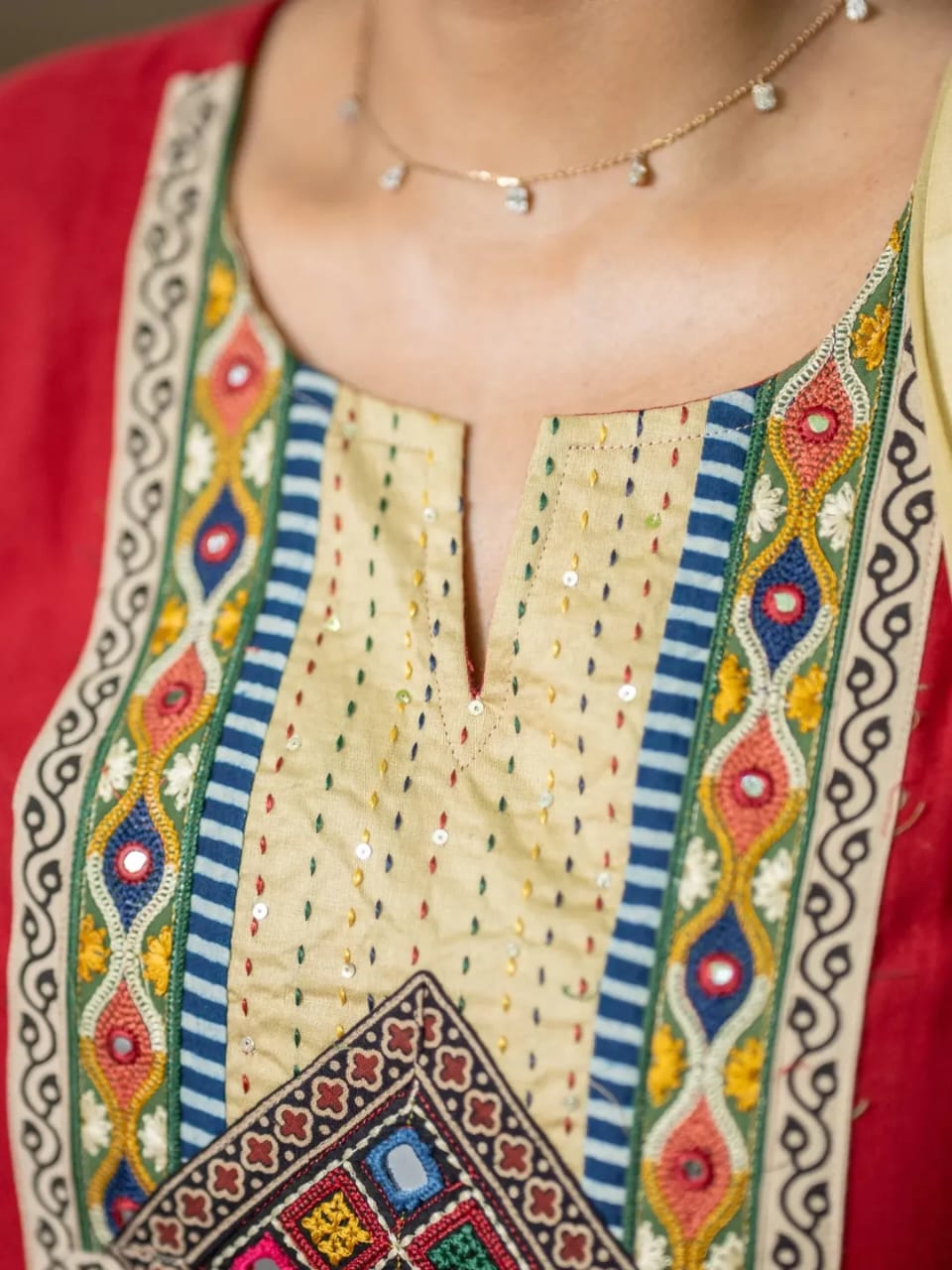 Kurta Work: Patch Embroidery on Yoke (Kutch-Inspired)