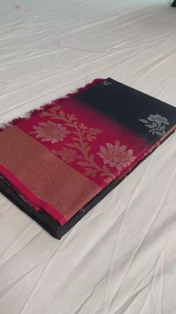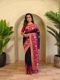 Fulpati Black Dual Tone Silk Saree with Zari Weaving