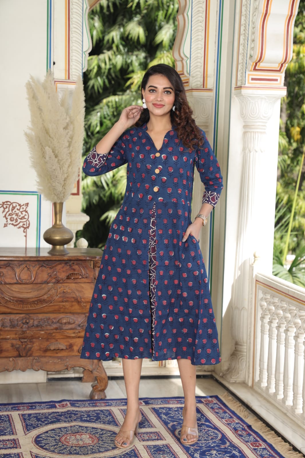 Hand Block Printed Cotton One-Piece Dress – Elegant Everyday Wear