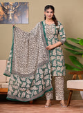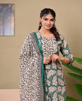 Hand Block Printed Stitched Cotton Suit Set with Matching Cotton Dupatta >