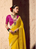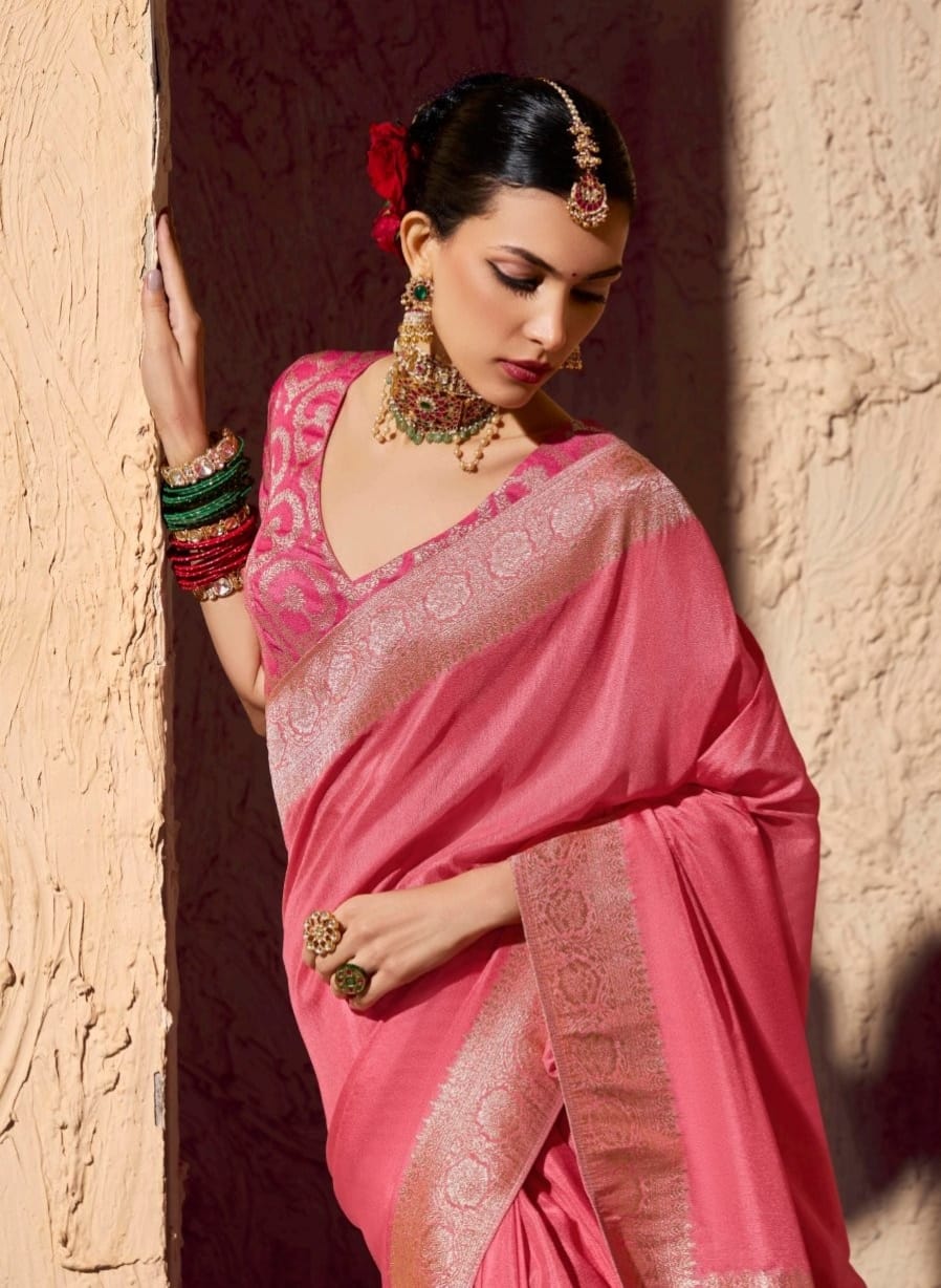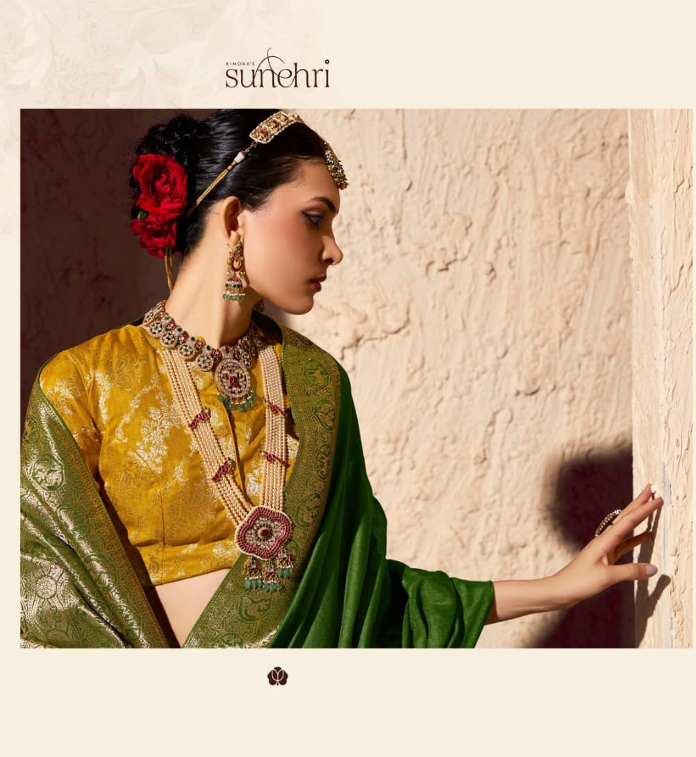 Drape yourself in royal elegance with the Kimora INDRI SILK Saree, crafted from Pure Viscose Silk with luxurious Zari Weaving and graceful Unique Tassels. Paired with an Amazing Brocade Zari Weaving Blouse, this saree defines timeless charm and sophistication β a true festive statement piece. ππ