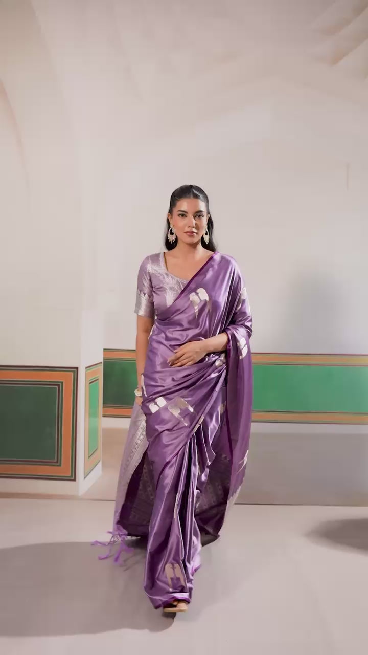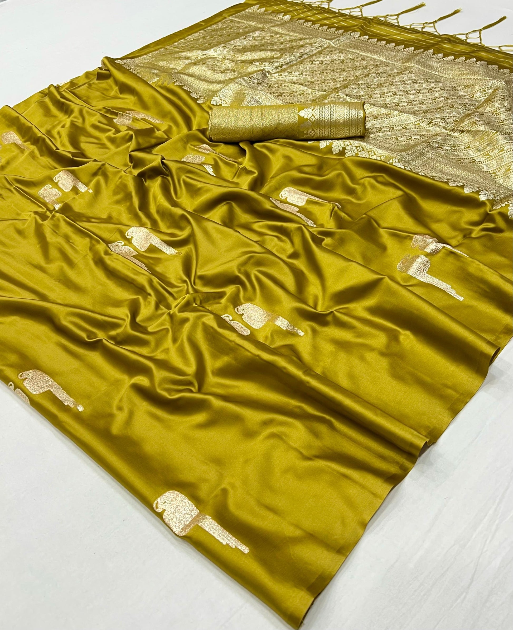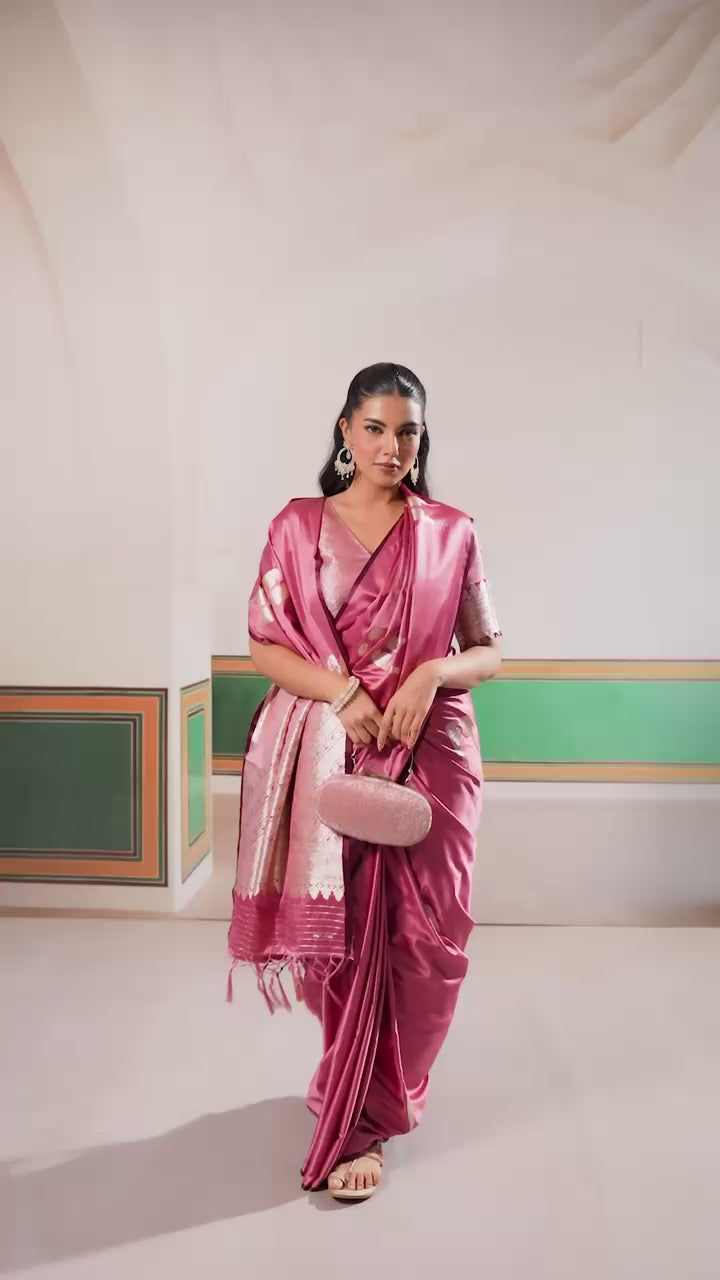 Kanthkala Retro Dusty Pure Satin Handloom Weaving Saree