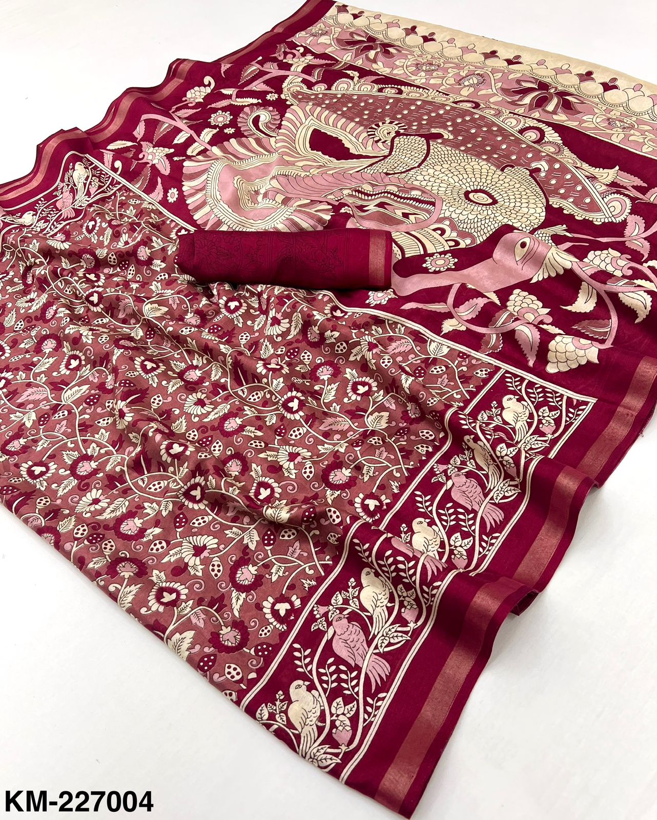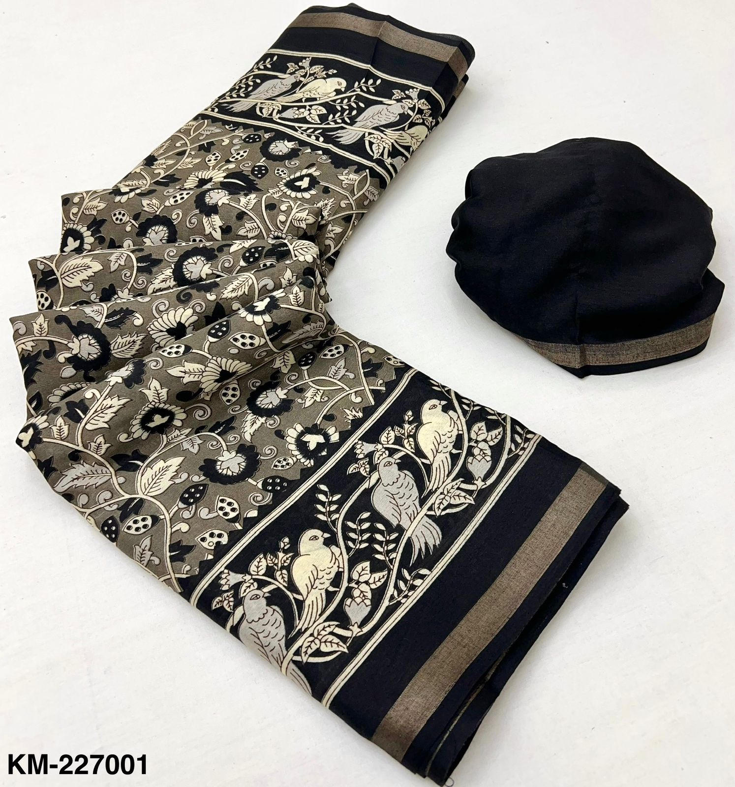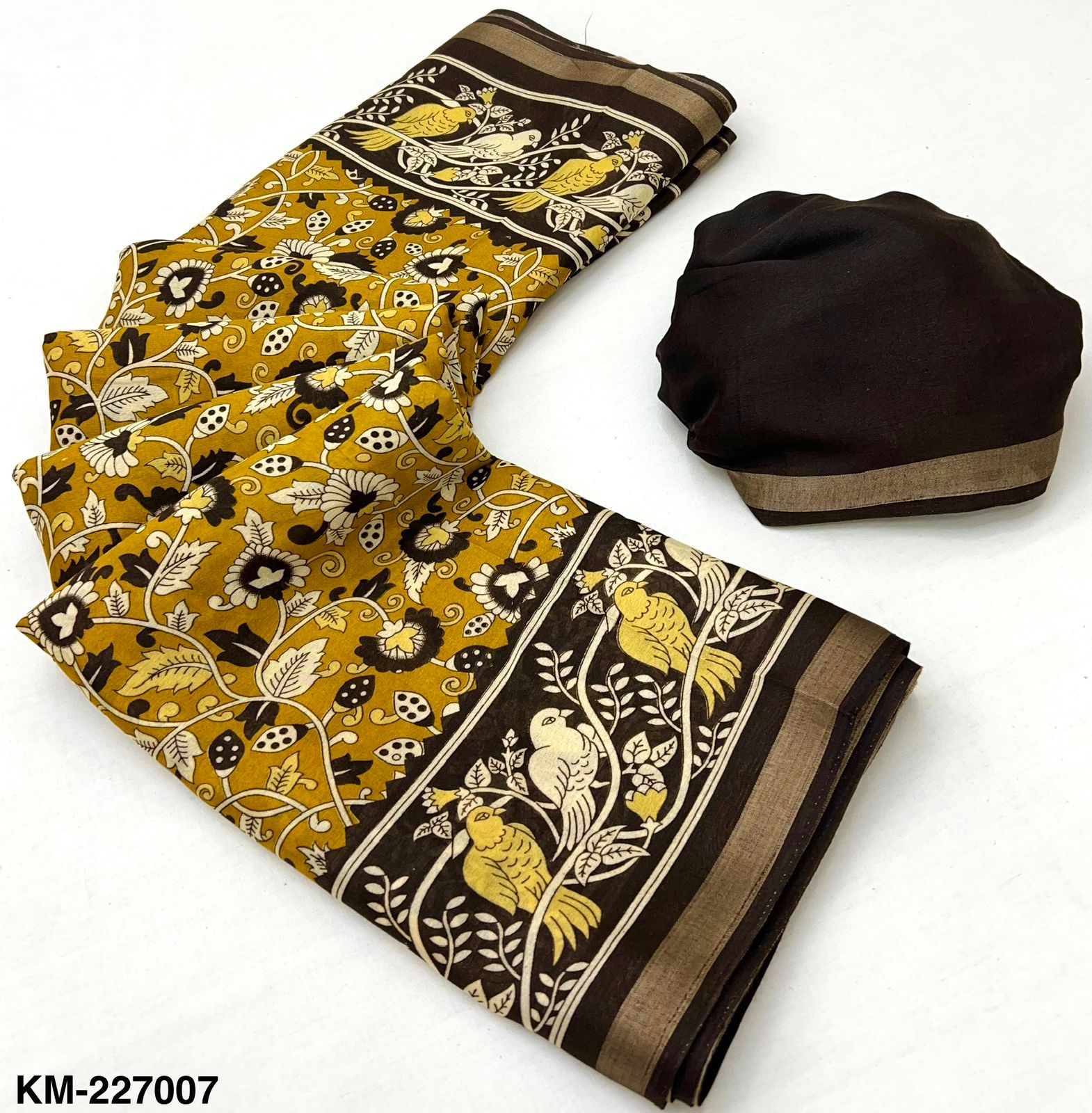 Saree Fabric: Soft Malmal Cotton with Kalamkari Print