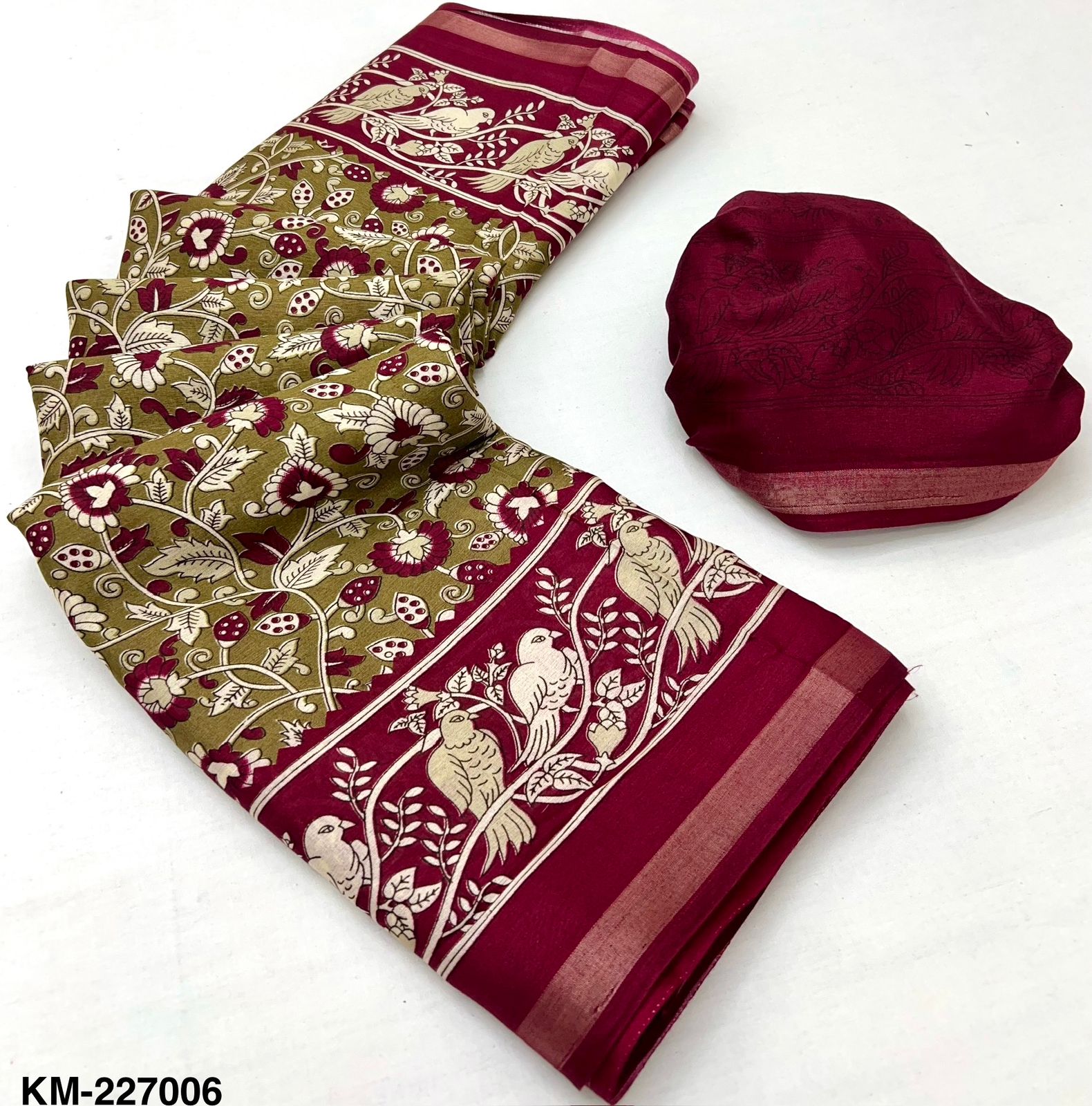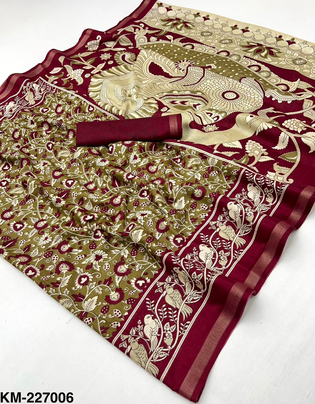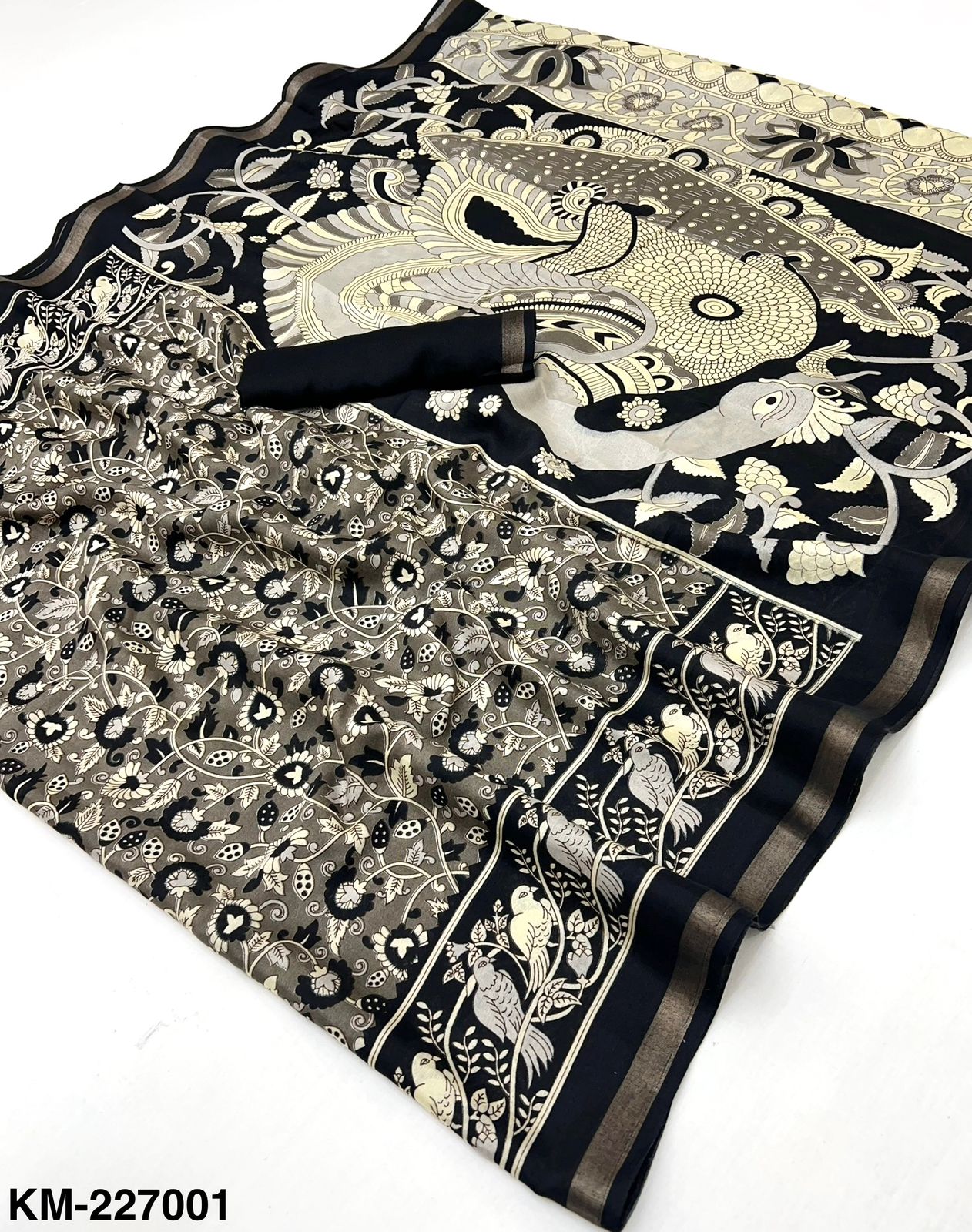 Saree Fabric: Soft Malmal Cotton with Kalamkari Print