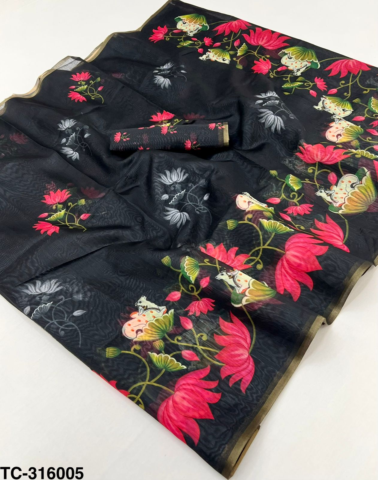 Print placement may vary slightly, making each saree uniquely beautiful.