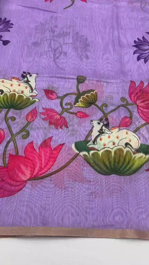 Kazari Series Pichwai Kalamkari Printed Tusser Chanderi Saree with Woven Border