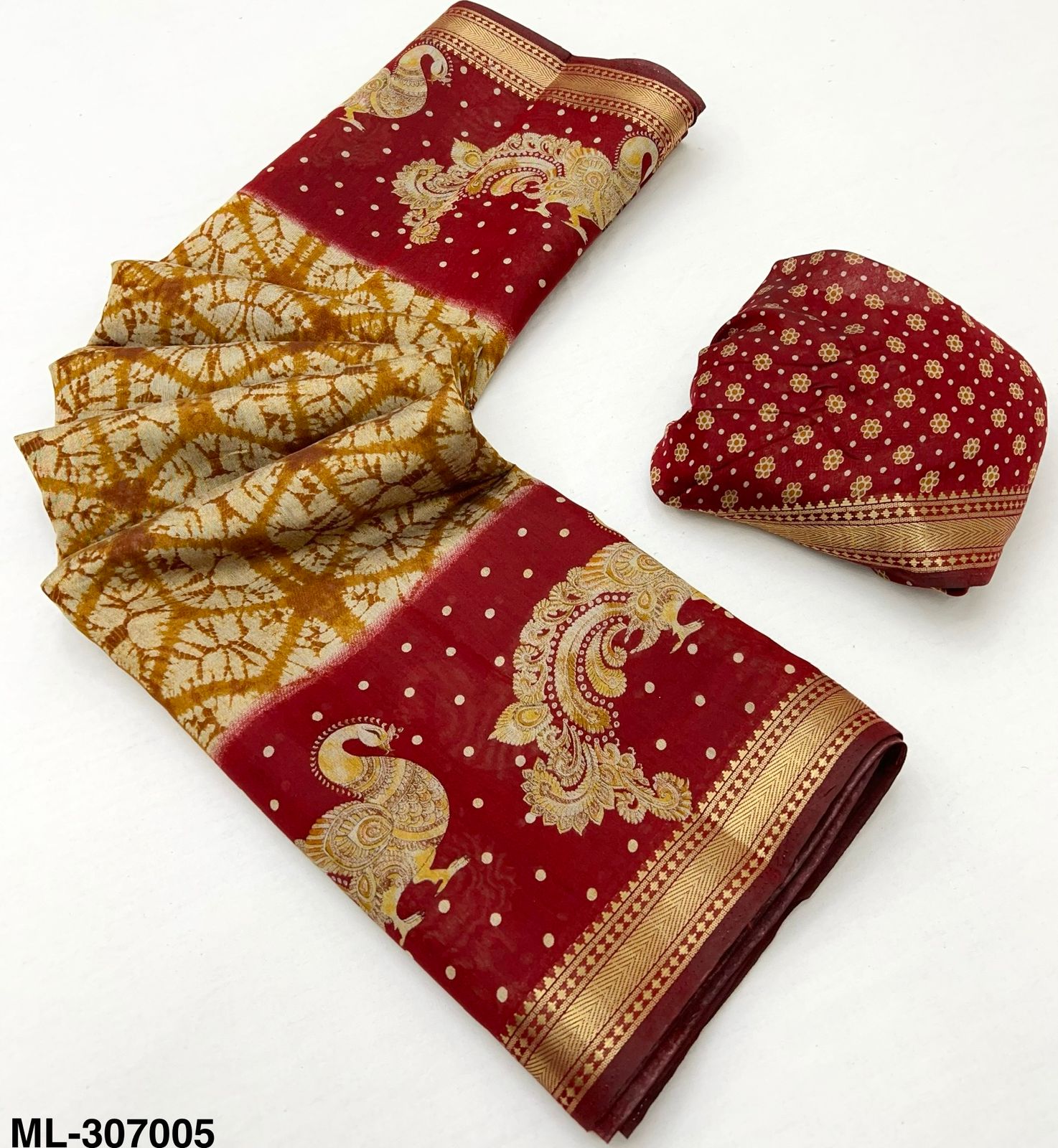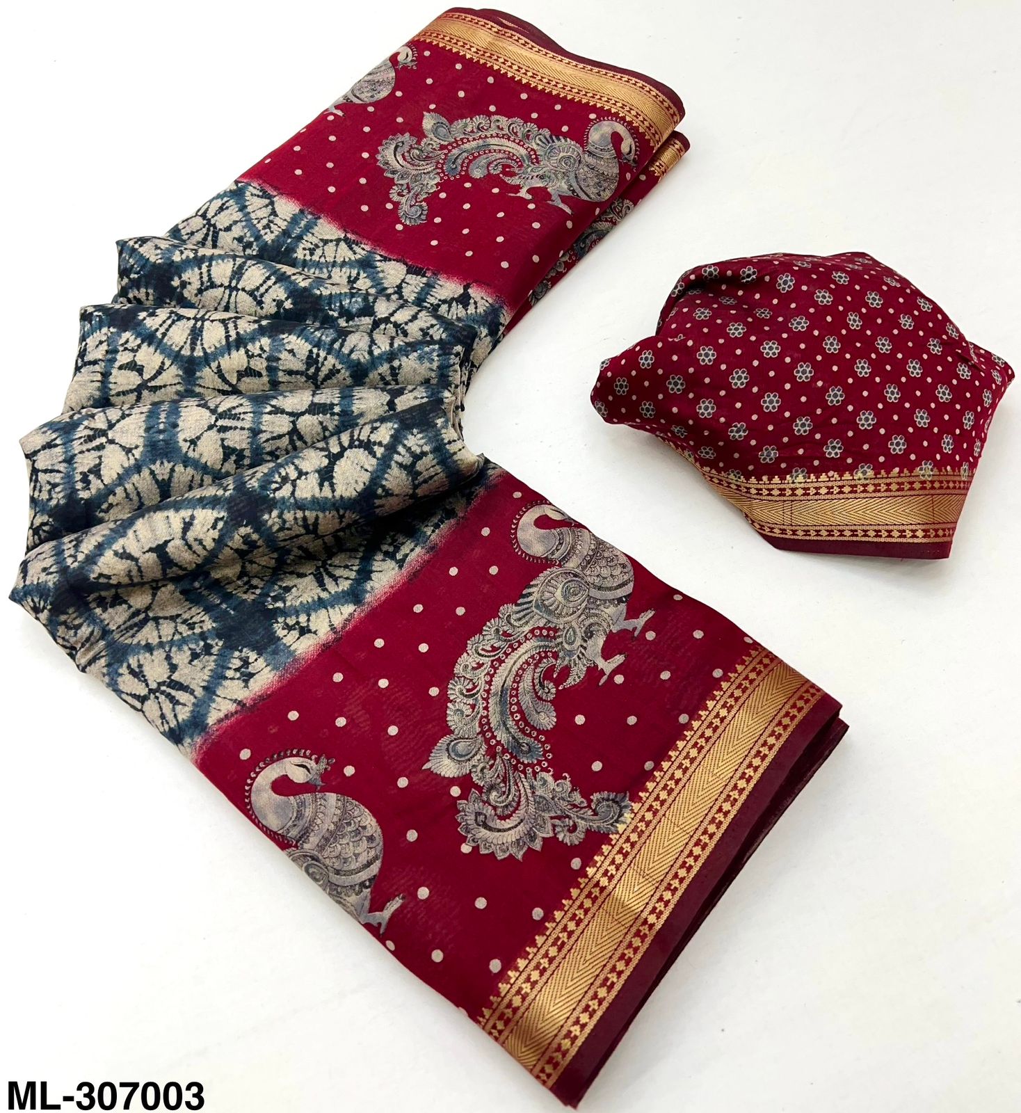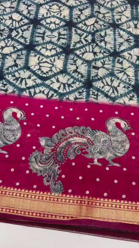 Kazari Series Soft Mul Cotton Printed Saree with Zari Border