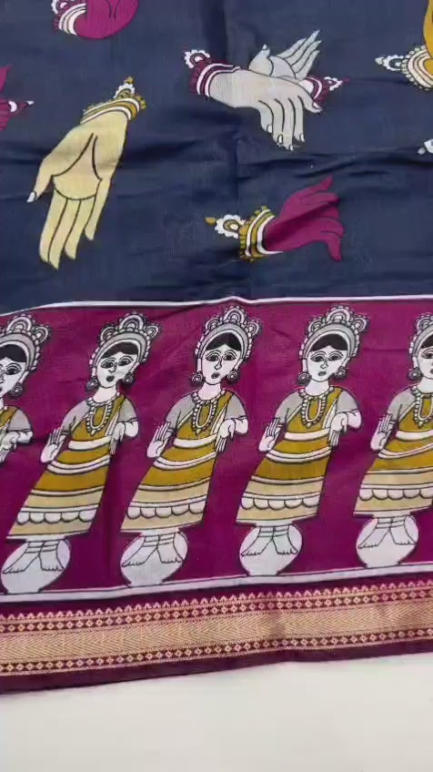 Kazari Series Soft Mul Cotton Saree with Unique Print & Zari Border