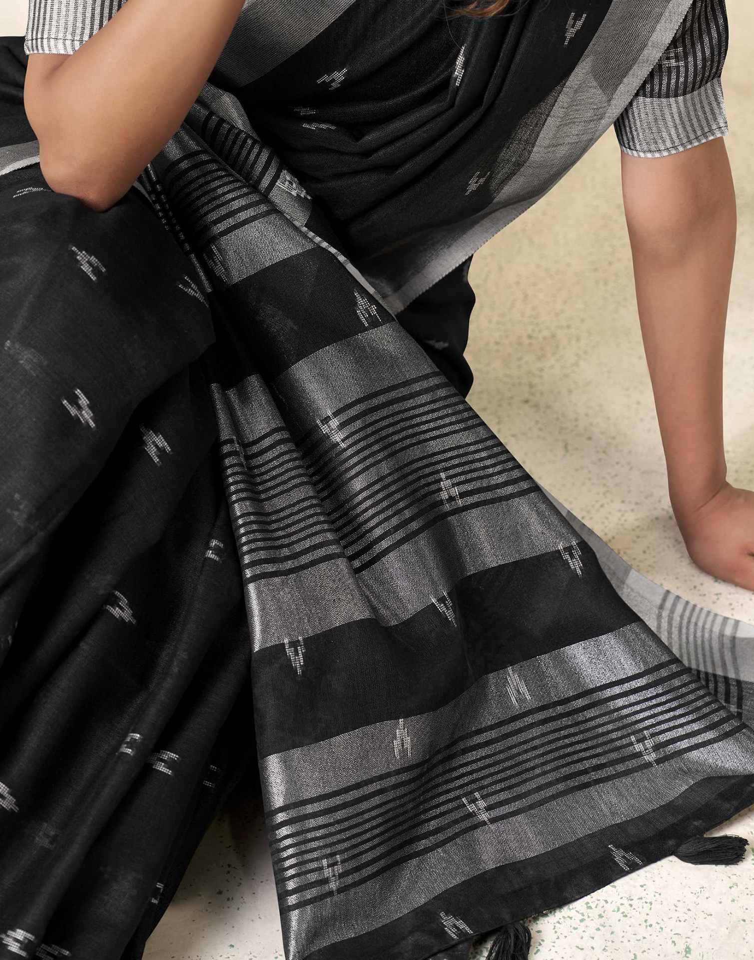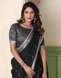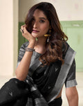 Product Name: KHYATI Black Linen Silk Woven Saree