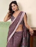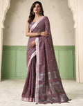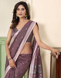 Product Name: KHYATI Dark Mauve Linen Silk Woven Saree
