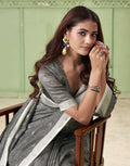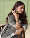 Product Name: KHYATI Grey Linen Silk Woven Saree