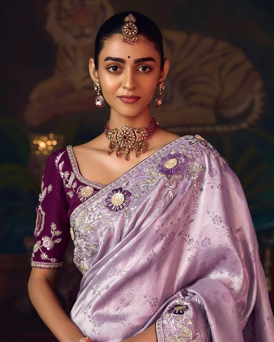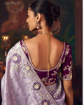 Lavender Shagun Silk Saree with Hand Embroidery & Designer Contrast Blouse