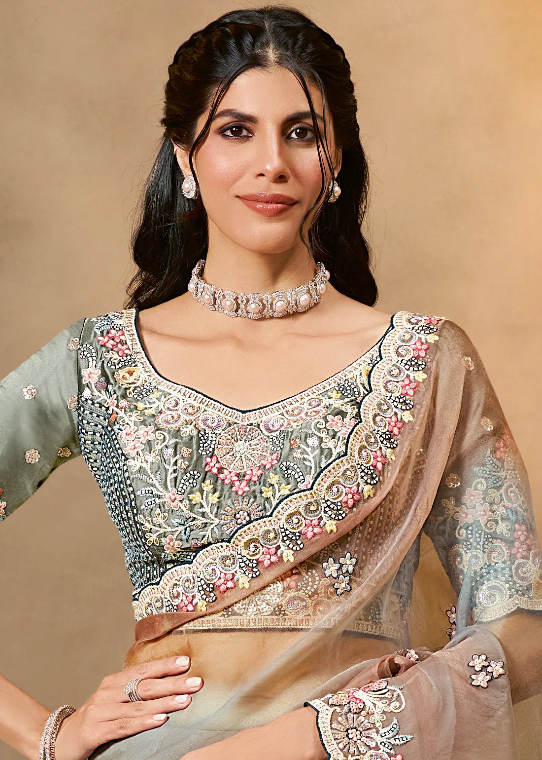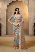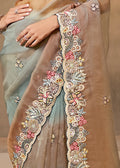 Mahotsav Grey and Brown Designer Silk Saree with Heavy Border & Matching Blouse