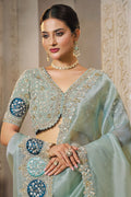 Mahotsav Pastel Cyan Green Organza Silk Saree with Heavy Border