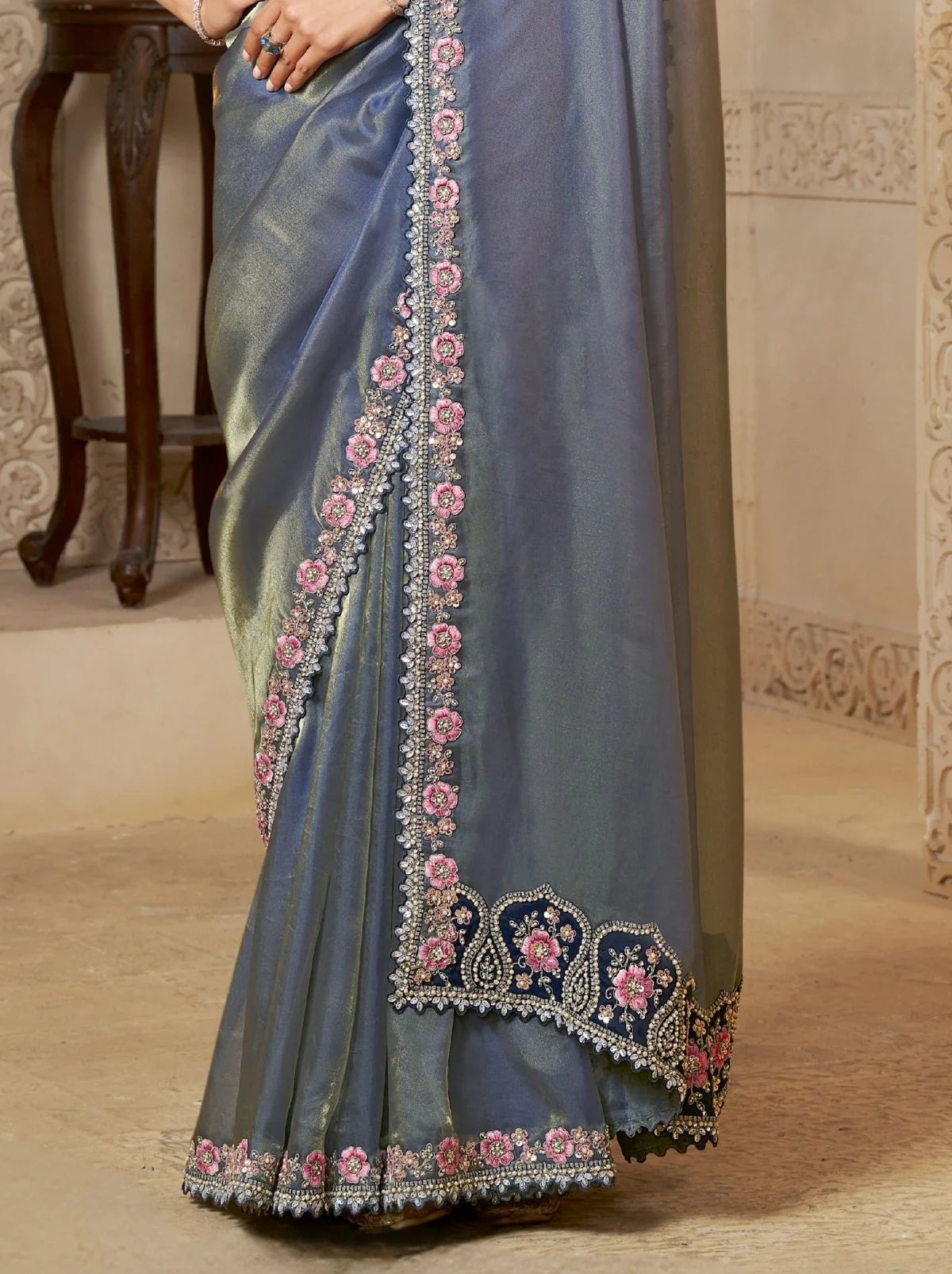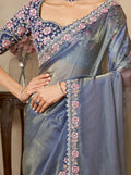 Mahotsav Pigeon Blue Embroidered Silk Saree with Stone Work & Designer Blouse