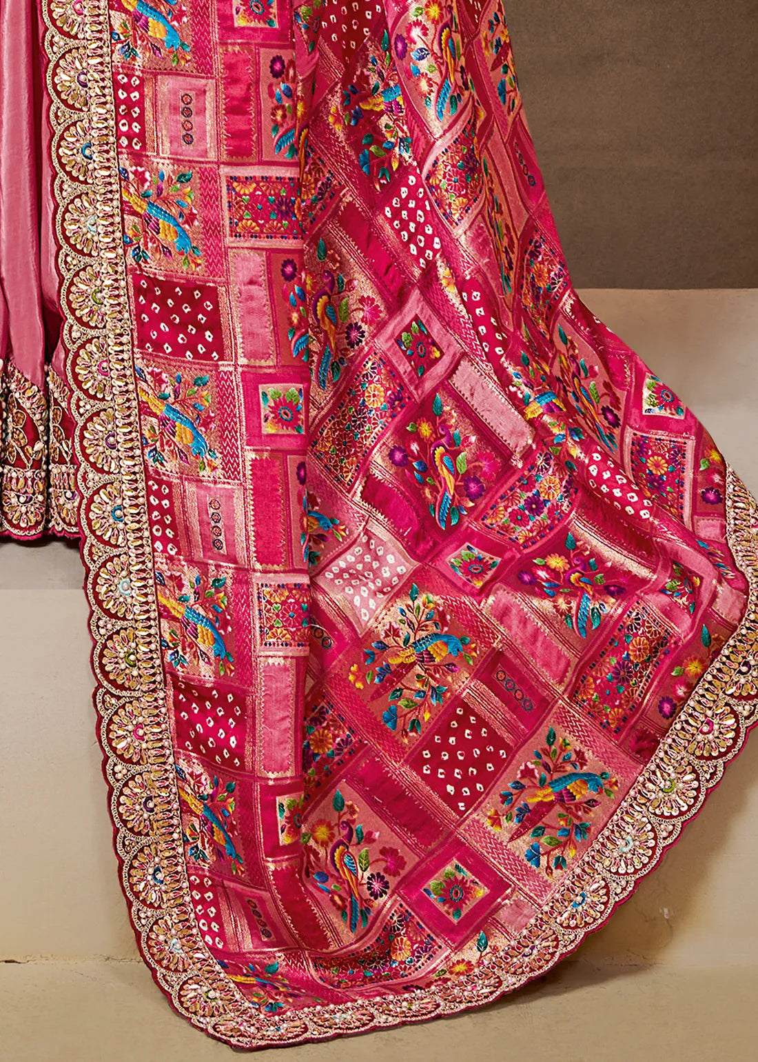 MAHOTSAV Pink Silk Saree with Heavy Embroidery & Mirror Work