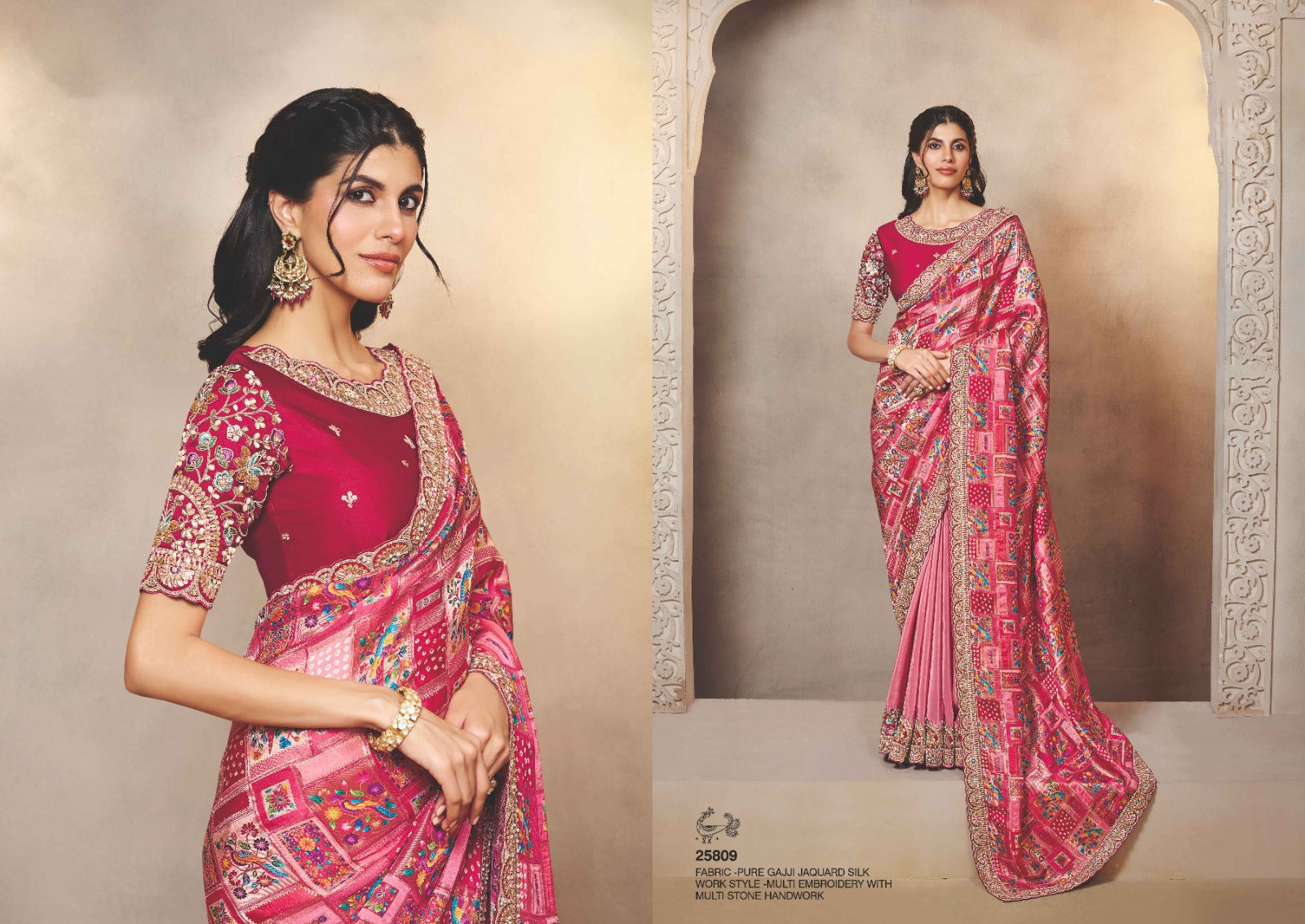 Drape yourself in elegance with this Designer Pink Silk Saree, featuring exquisite heavy embroidery and mirror work that reflects timeless beauty. Perfect for weddings, festive occasions, and grand celebrations — this saree defines sophistication and style. 💖