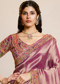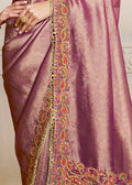 Mahotsav Regal Mauve Banarasi Silk Saree with Rich Zari & Multicolor Kashmiri Embroidery