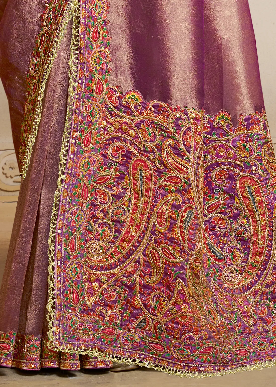 Work: Rich Zari Weaving with Multicolor Kashmiri Embroidery