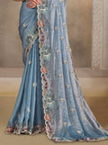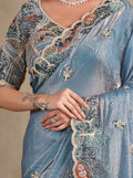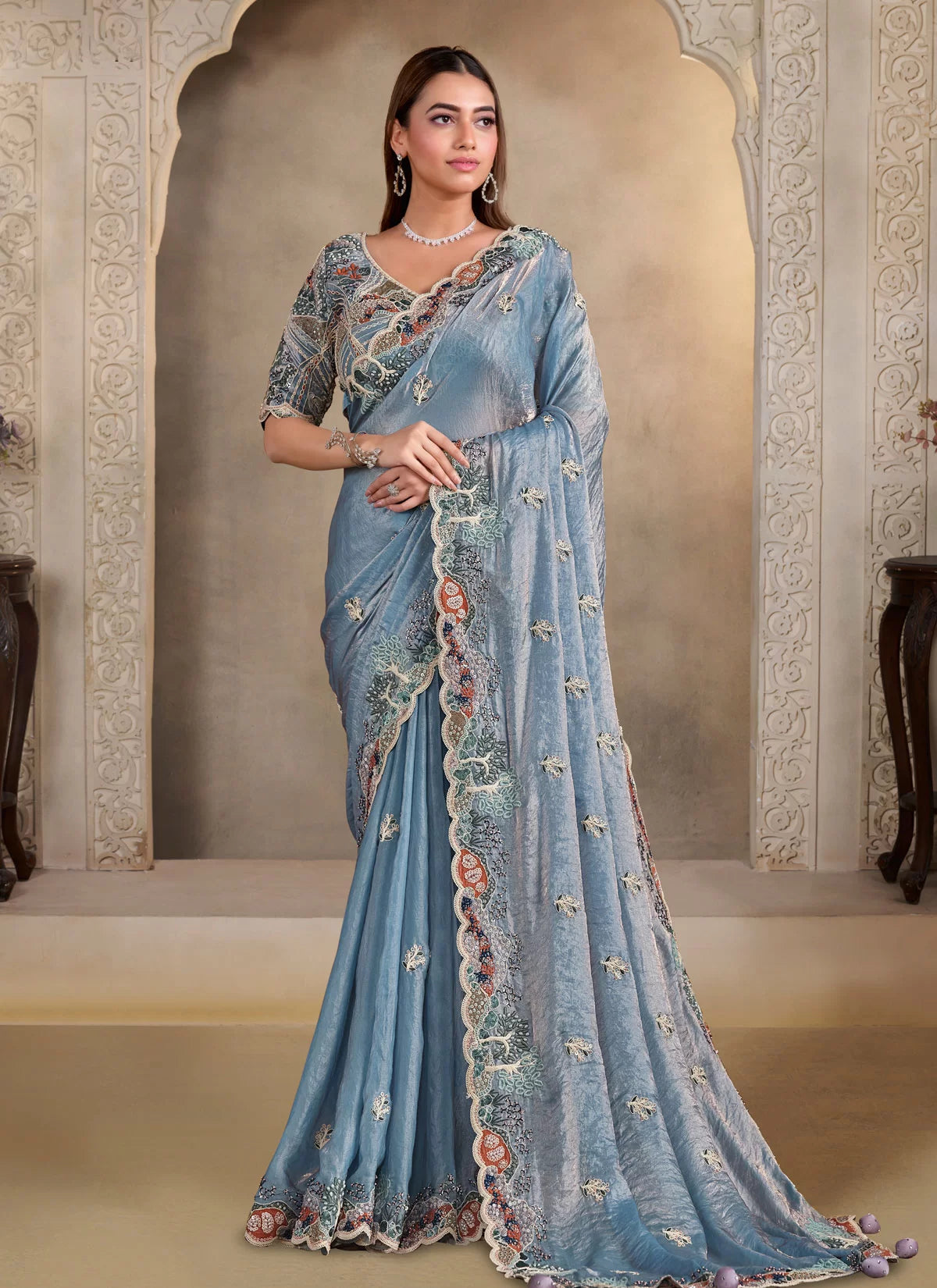 Mahotsav Steel Blue Premium Satin Silk Wedding Saree with Blouse Piece