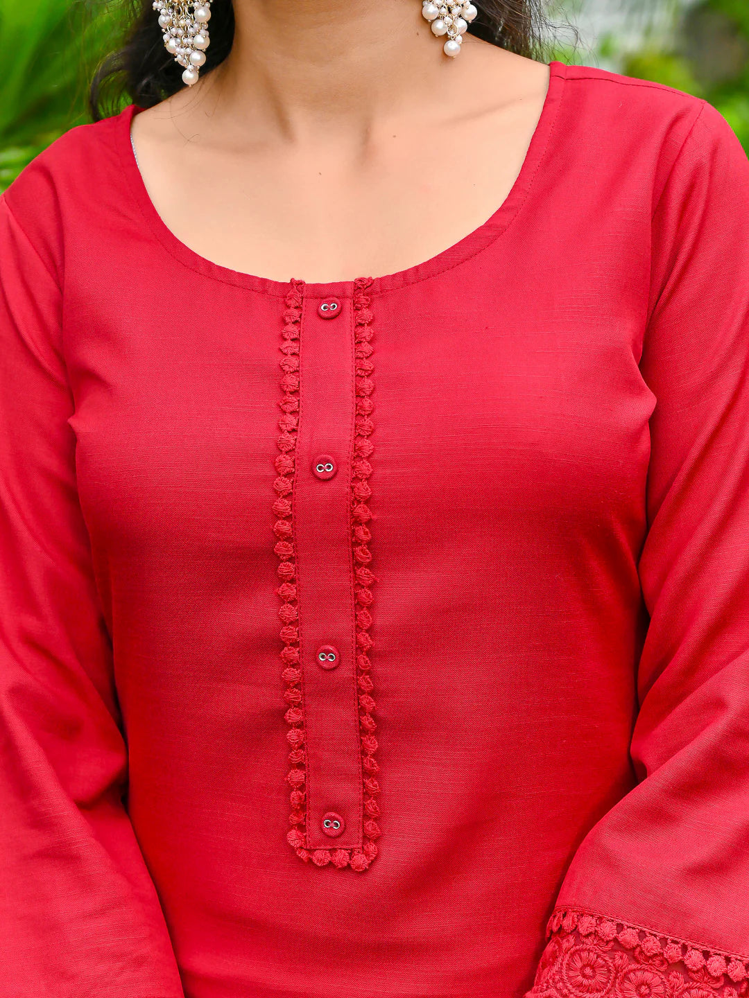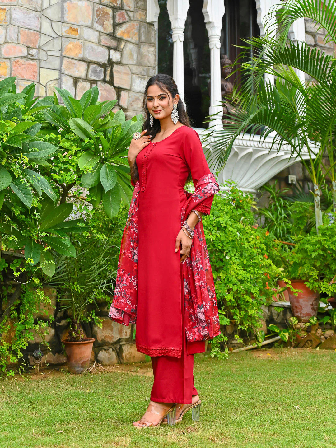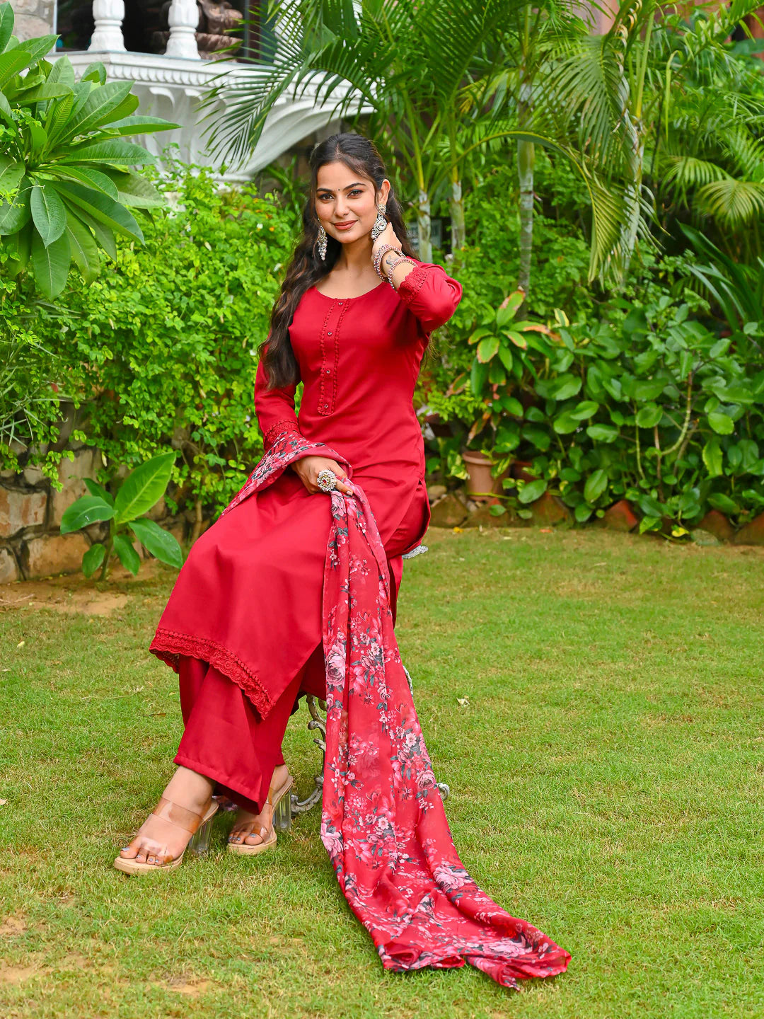 Maroon Solid Straight Kurta Set with Printed Dupatta for Women