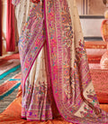 Premium Cream Poly Viscose Silk Polka Dot Banarasi Saree with Pink Woven Border