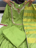 Premium Maheshwari Silk 3-Piece Suit Set with Embroidered Neck & Banarasi Jacquard Dupatta