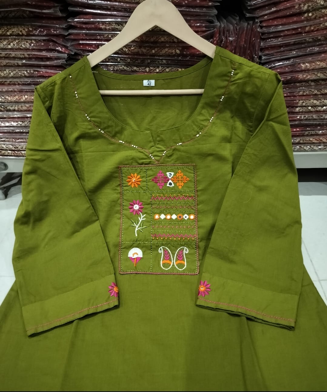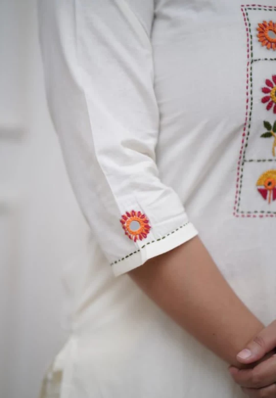 Kurta Work: Front Embroidery with Handwork on Yoke & Sleeves