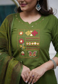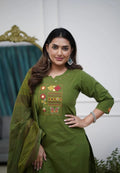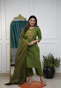 Pure Cotton Embroidered Kurta Pant Set with Dupatta