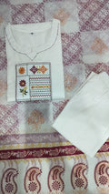 Refresh your everyday ethnic wardrobe with this thoughtfully designed cotton kurta pant set, crafted to offer effortless elegance and comfort. Featuring delicate embroidery and handwork detailing on the front and sleeves, the kurta reflects understated sophistication.