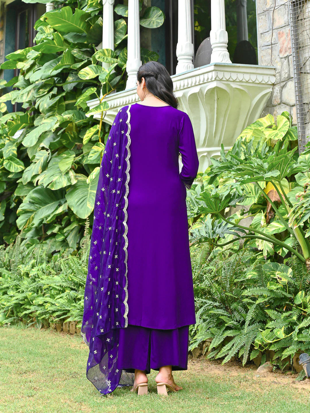 Purple Embroidered Kurta with Palazzo & Organza Dupatta for Women