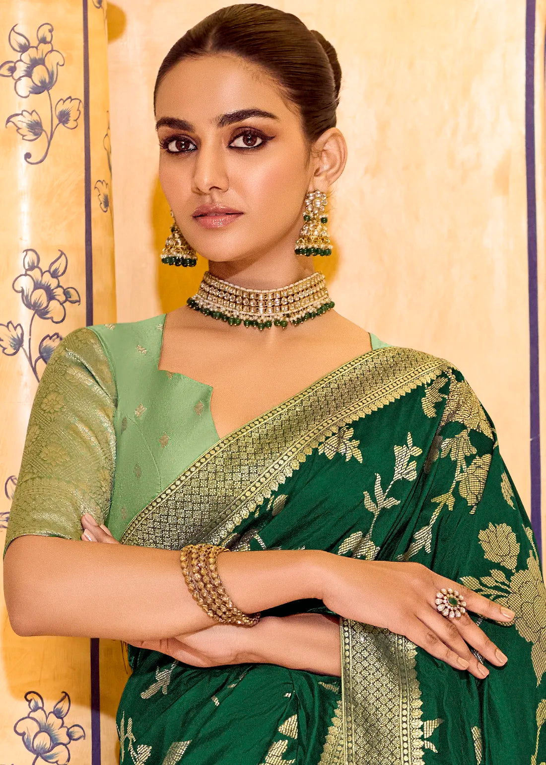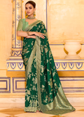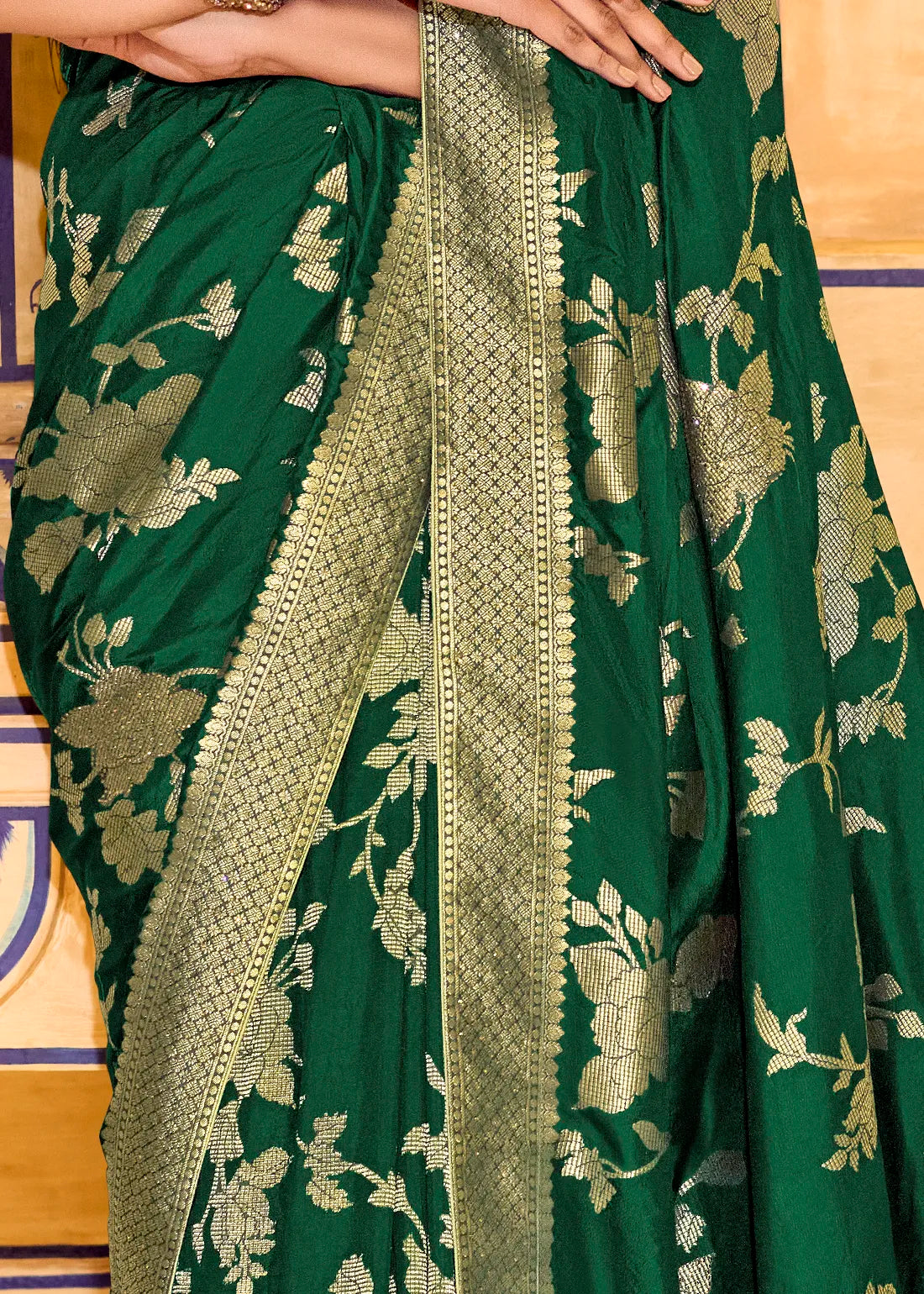 RajMahal Bottle Green Pure Banarasi Crepe Silk Saree