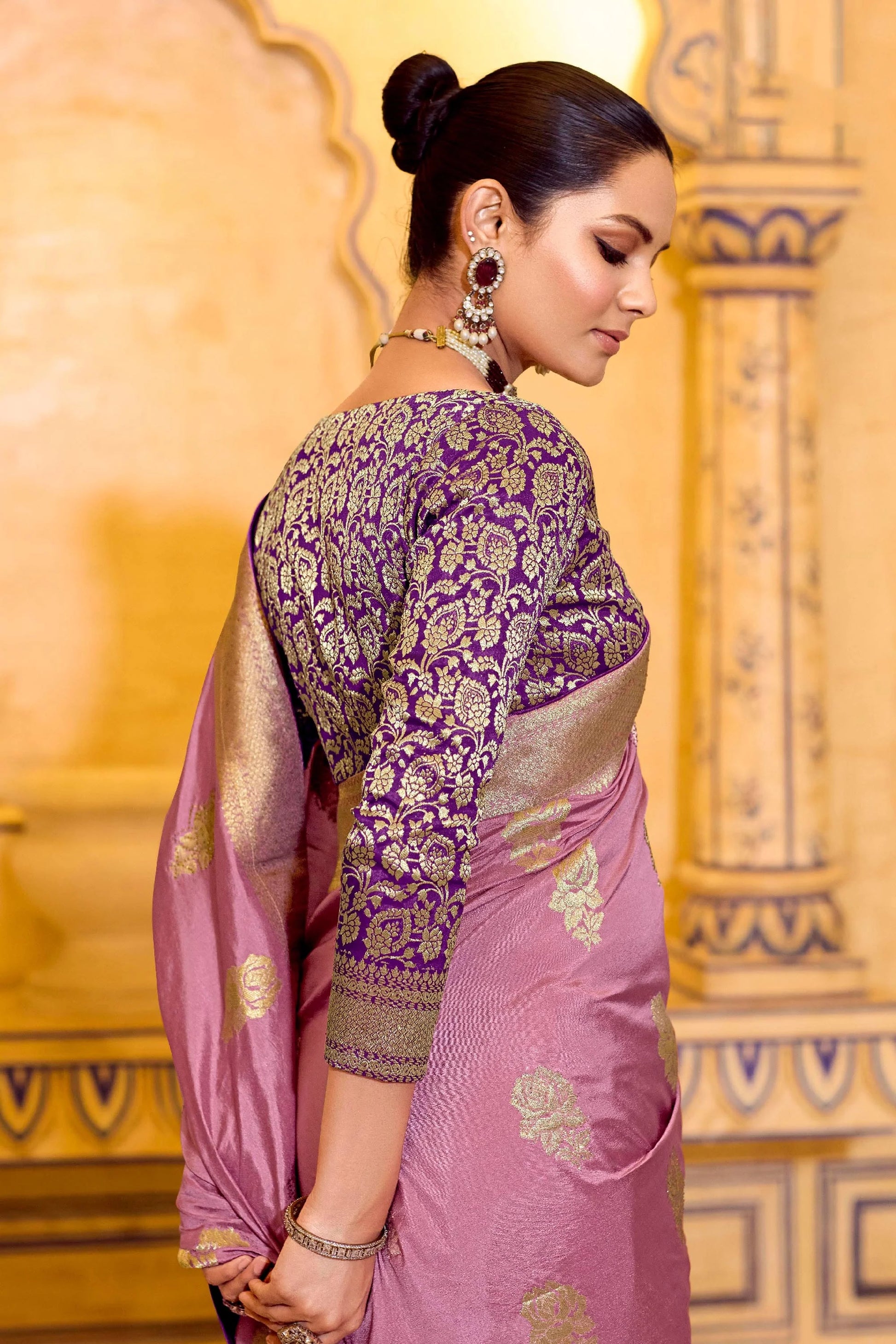 RajMahal Dusty Pink Pure Banarasi Silk Saree