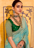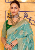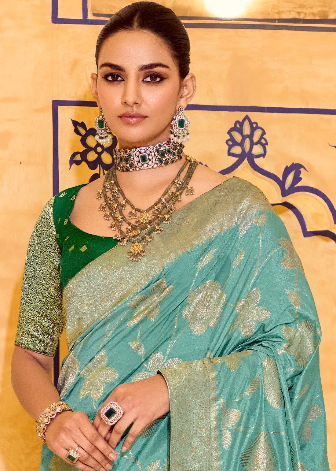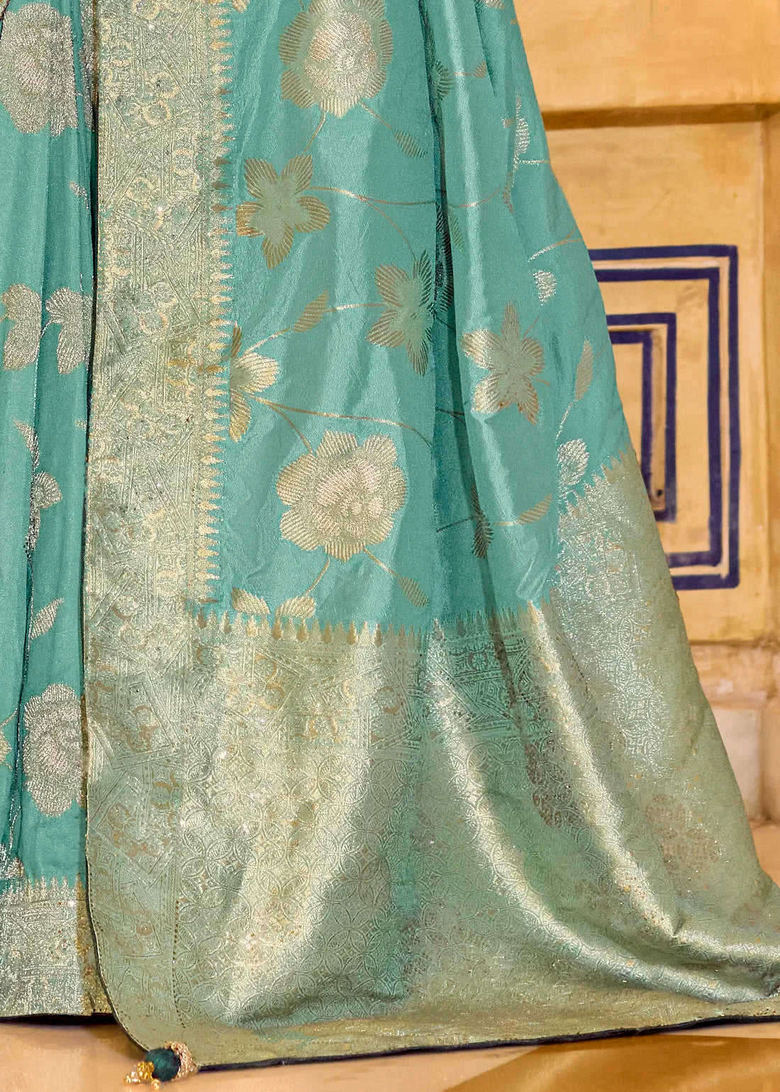 RajMahal Sea Green Pure Banarasi Crepe Silk Saree