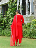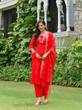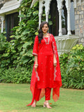 Red Embroidered Kurta Set for Women
