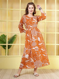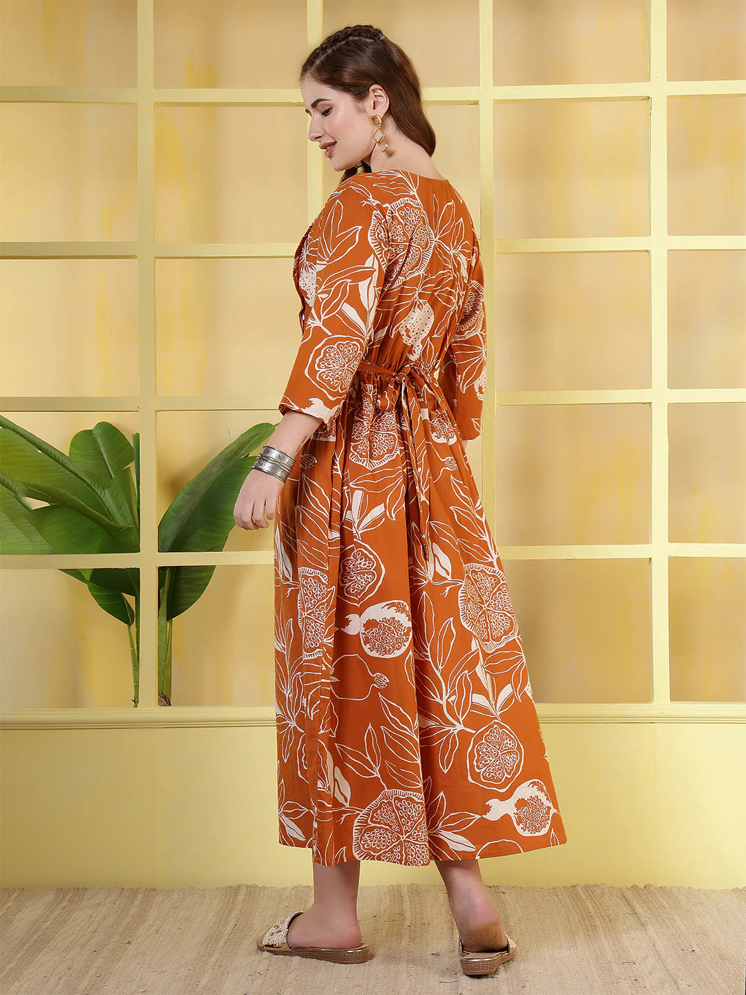 Make a statement in earthy tones with this Rust Printed Dress. Crafted from breathable pure cotton, it blends everyday comfort with understated elegance. The rich rust shade and minimal print detail make it a versatile addition to your wardrobe—ideal for casual outings, work, or festive evenings.