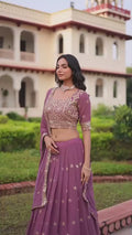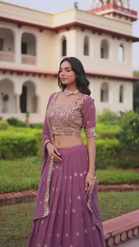 Step into festive elegance with this beautifully crafted faux georgette lehenga choli set. Designed with rich sequins and zari multi-embroidered work, paired with a matching dupatta, this ensemble is perfect for weddings, parties, and grand celebrations.
